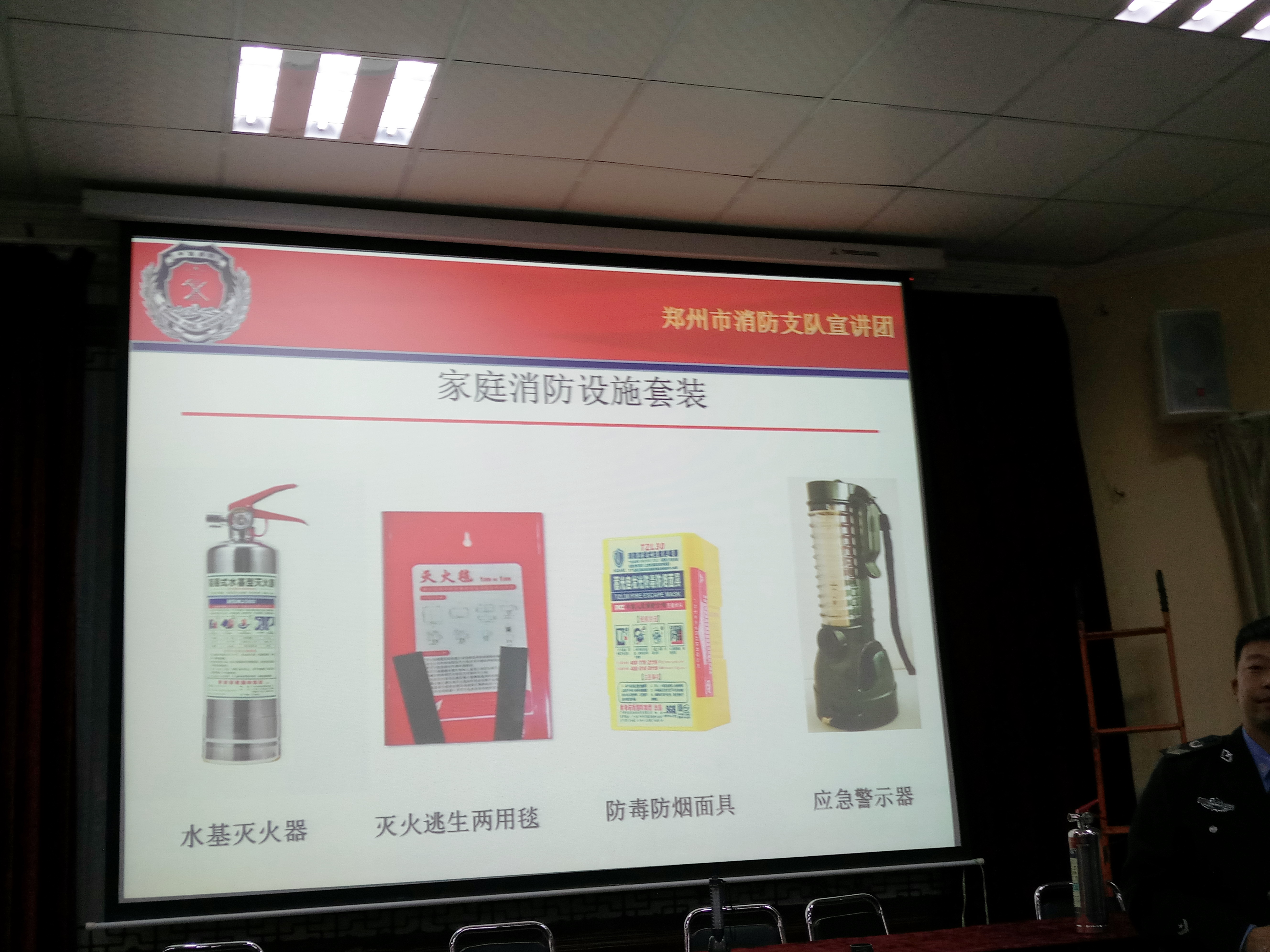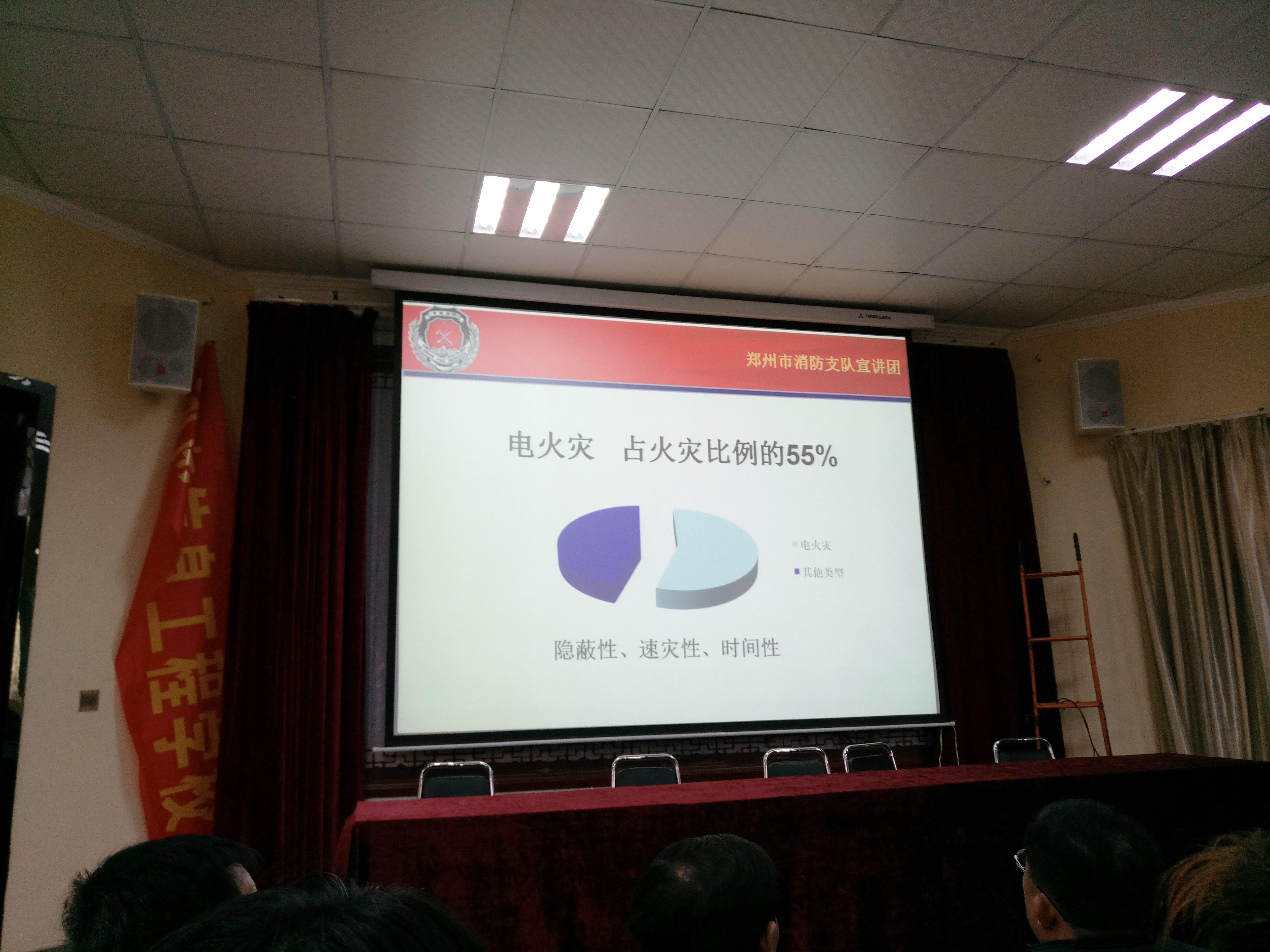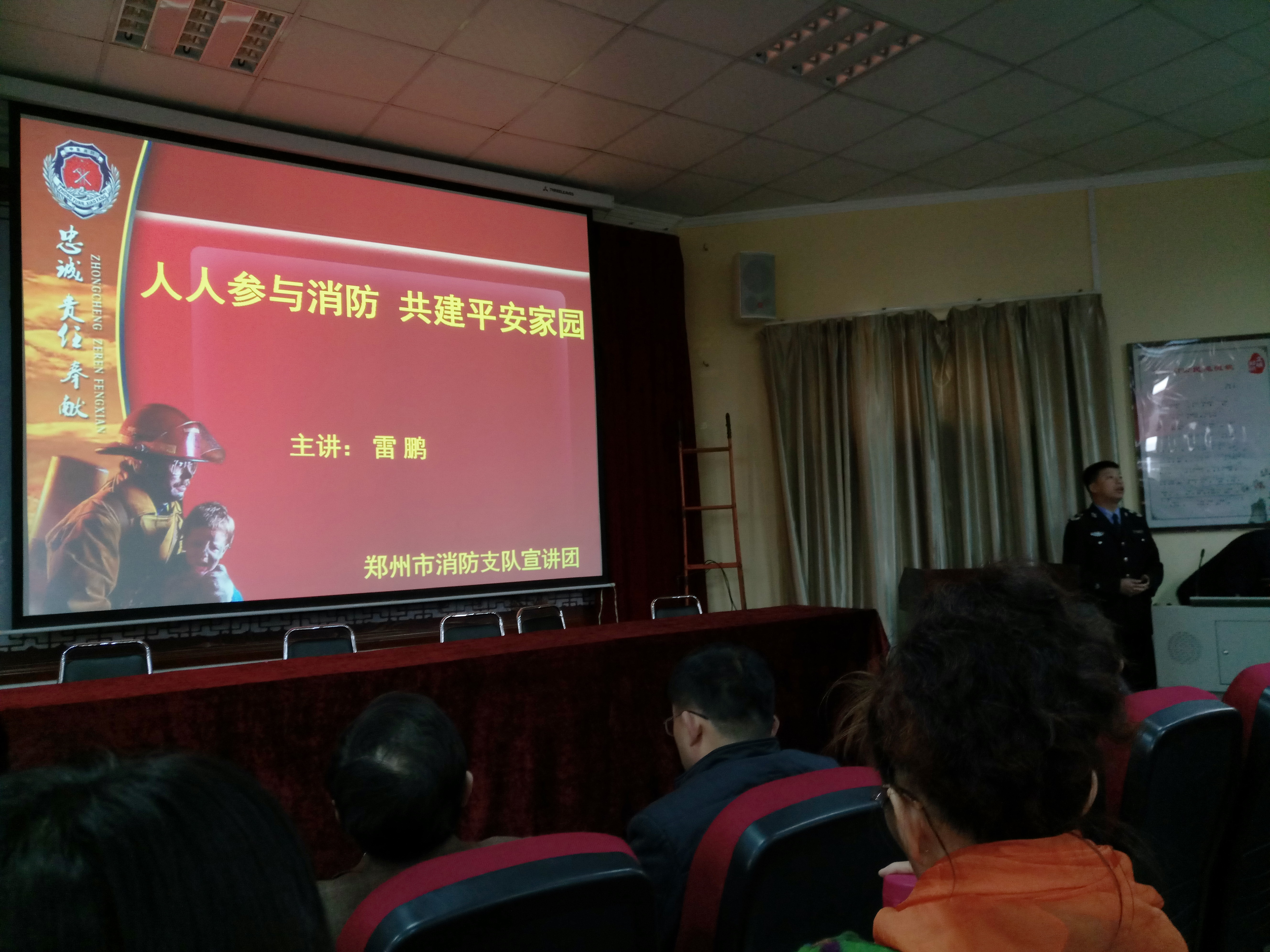 这次消防安全培训的题目是:人人参与消防,共建平安家园,由郑州市消防支队宣讲团雷鹏警官主讲。雷警官在培训讲解过程中,图文并茂,直观生动,重点讲解了火灾自救的知识,参加培训人员受益匪浅。