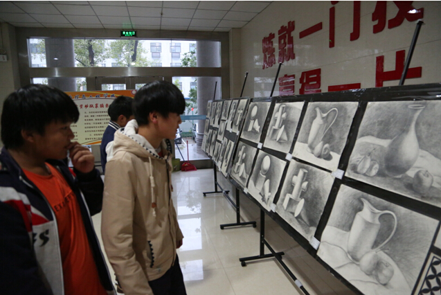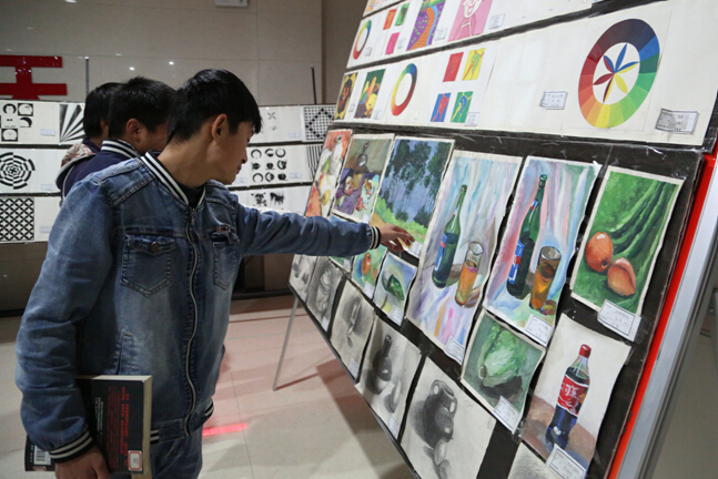 为丰富校园文化生活,迎接全省中等职业学校校园文化示范校的创建,艺术设计系于10月28日下午在综合实训楼一楼大厅举办了学生绘画作品展。展览吸引了很多学生参观,给广大学生提供了学习和展示的平台,丰富了学生的课余文化生活。