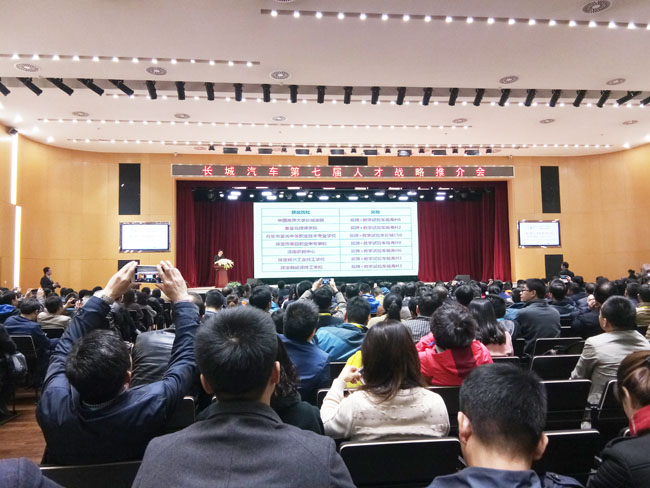 本次推介会以“世界的舞台,国际化人才”为主题,由长城汽车股份有限公司组织,包括哈尔滨工业大学、燕山大学、吉林大学、河北农业大学等全国221所大中专院校、猎头公司、保定市政府部门等600余人出席本次推介会。