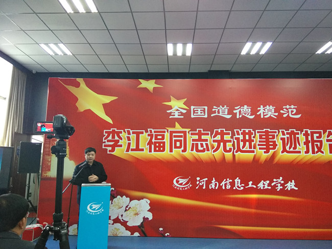 李江福同志是河南省的骄傲,是我们学习的榜样。我校全体职工听了报告之后,倍受鼓舞,学习他的诚实守信,努力营造文明守信,敬岗爱业,勇于担当的良好风尚的校园氛围。商务系全体教职工决心脚踏实地,兢兢业业,在每一天的工作岗位上践行精神文明建设。