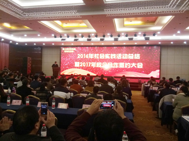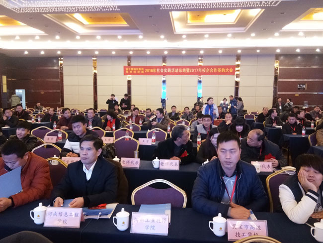 大会首先回顾了2016年校企合作的成果,51所职业院校的10000多名学生参加了富士康科技集团的社会实践活动;漯河技师学院代表合作院校致辞,表达了校企合作的重要性;优秀驻厂老师代表畅谈在企业指导学生实习的收获;优秀学生代表对学校提供的社会实践平台、驻厂老师的指导与关爱表示感谢,企业的实践体验让他们认识了社会、增加了技能;优秀学校、老师、学生得到了不同级别的表彰,我校成为校企合作“优秀典范院校”。