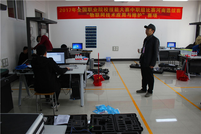 2017年3月3日上午,2017年全国职业院校技能大赛中职组比赛河南选拔赛“物联网技术应用与维护”赛项在我校实训楼正式开赛。本次比赛由河南省教育厅主办,河南省职业技术教育教学研究室承办,我校为协办单位,来自全省各地的11个参赛队参加了本次比赛。由于参赛队较往年翻了一倍多,本次比赛分为上午、下午两场。参赛通过无记名抽签的方式,决定各自的赛场号和工位号。经过一天的紧张比赛,我校圆满完成2017年全国职业院校技能大赛中职组比赛河南选拔赛“物联网技术应用与维护”赛项的承办任务。