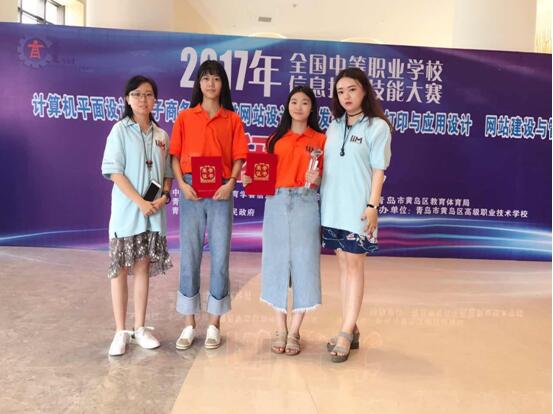 2017年6月23日--24日,2017年全国职业院校信息技术技能大赛计算机平面设计赛项在青岛市黄岛高职校举办,我校艺术设计系选手刘雅、屠雨嘉分别获得本次比赛一等奖和二等奖的好成绩。
