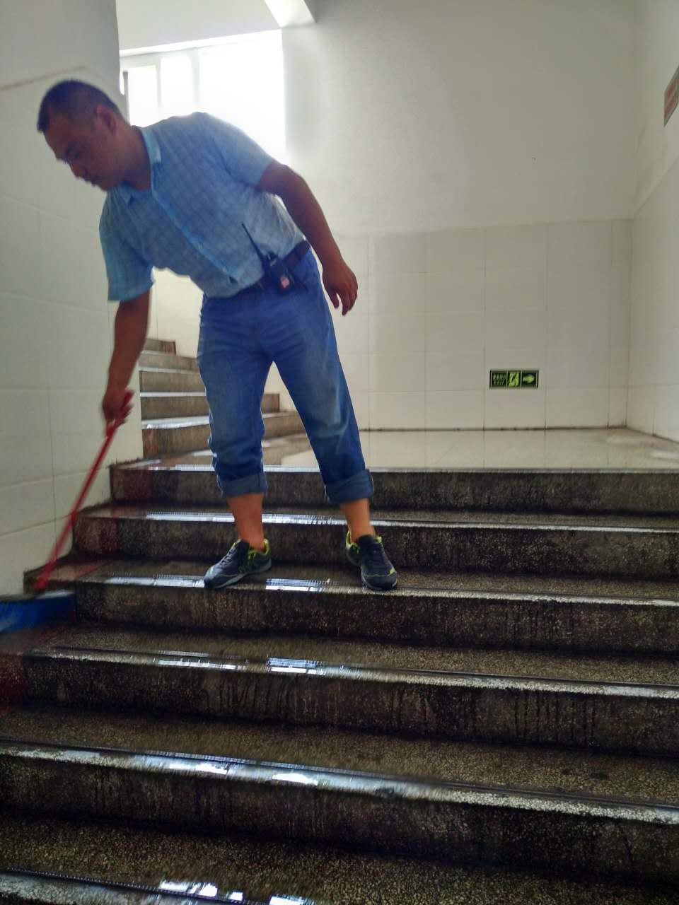 由于此时正值学校放假期间,学校教学楼进入维护整修阶段,前两天我们教学楼由于进行施工,整个楼有比较多的粉尘,为了准备明天的大型考试,我们中心与学生处协调,学生处积极配合,闫老师今天中午领着几个学生不辞辛苦,给教学楼彻底来了一次大清扫。为明天后天的考试顺利的进行营造一个干净整洁的考试环境,为我们学校树立了良好的形象。