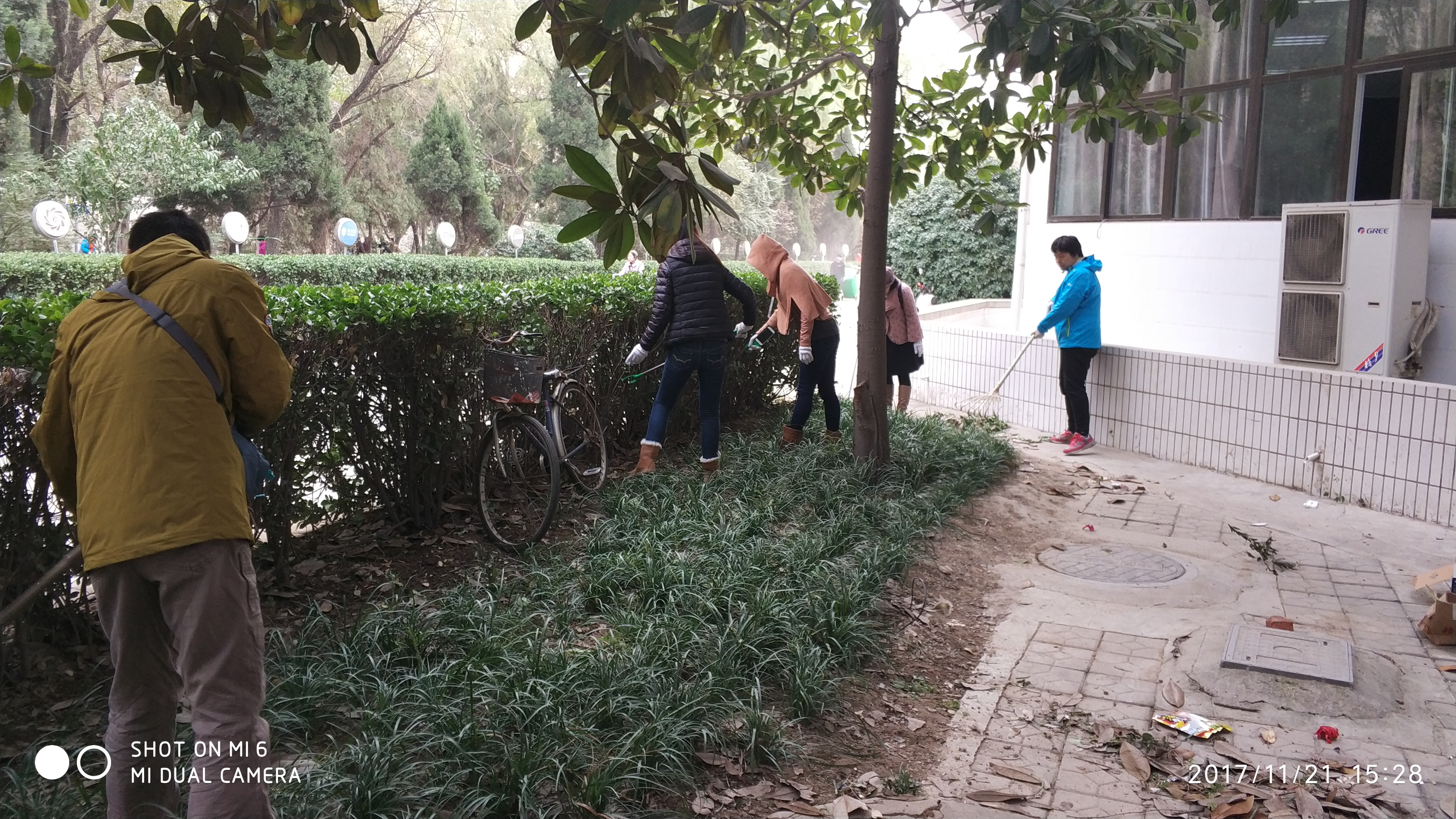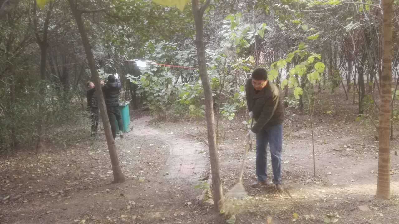 2017年11月21日下午,电子工程系全体教职工积极响应学校号召,对八角楼东侧花园和树林南边进行定点清洁。活动中,大家有的耙树叶、有的清杂物、有的运垃圾,不放过任何死角,忙得不亦乐乎、一直干到夕阳西下,仅余小树林一角。第二天一早,大家又对余下区域进行了彻底清理。