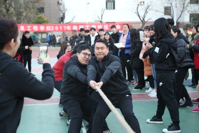 此次职工趣味运动会,共设置了“同舟共济”、“运球投篮接力”、“拔河”三个集体项目,开幕式结束后,拔河比赛正式开始。竞技场上,运动员齐心协力、一鼓作气,裁判员认真负责、耐心细致,拉拉队呐喊助威、加油鼓劲。一时间,呐喊声,助威声,欢笑声,胜利后的尖叫声,响彻校园。经过激烈角逐,最终,计算机系、商务系、基础部、学生处保卫处招办联队、财务处人事处信息中心党政办联队在第一轮比赛中胜出。