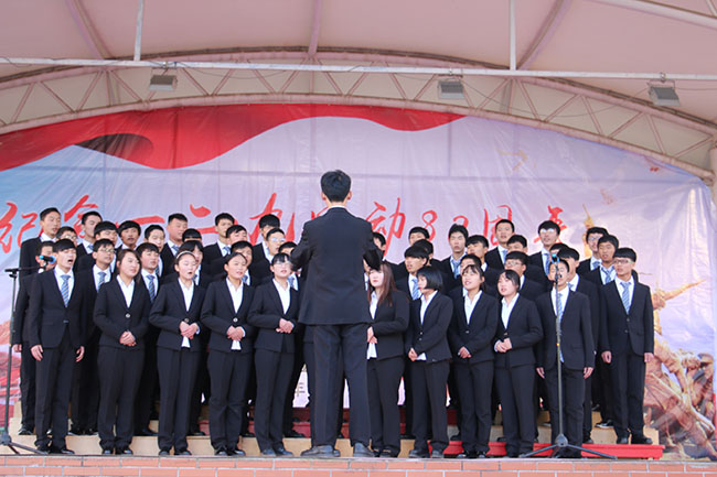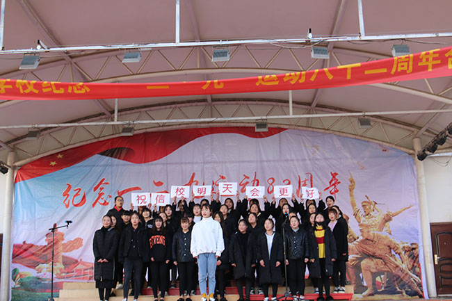 为了纪念“一二•九”运动八十二周年,培养同学们的爱国主义和集体主义观念,活跃校园文化生活,2017年12月5日下午,学生处(团委)在校运动场隆重举行纪念“一二·九”运动八十二周年合唱比赛。