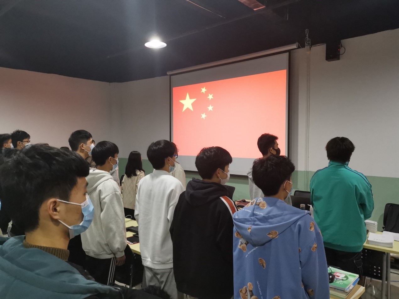 入团仪式在雄壮的国歌声中拉开序幕,全体起立奏唱国歌,现场气氛庄严、肃穆。