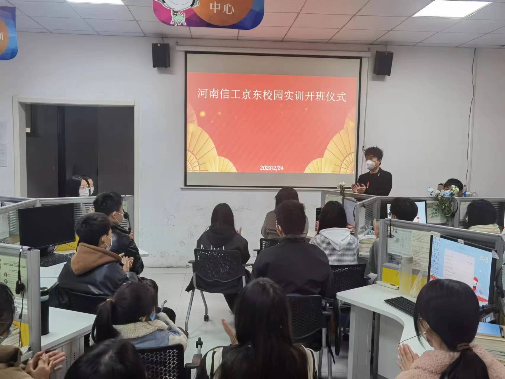 经过前期精心筹备,2月24日上午,我校京东校园实训中心在实训楼104举行了新学期开班仪式。商务系主任尹顺丽、副主任崔磊磊和京东集团驻我校主管陈文浩出席仪式,京东班全体学员参加。