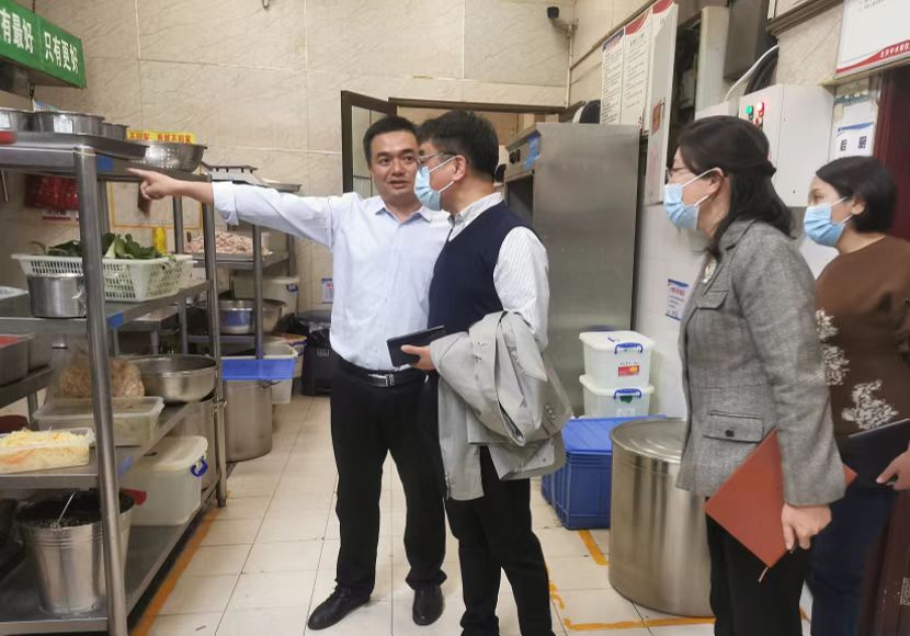 在校食堂,督查组查看了学校食堂的食材储藏室、分类洗菜间、做饭操作间,查阅了食堂工作人员的健康状况、食品进货记录、食堂的消杀安全记录、紫外线消毒记录等。此外,督查组还对校园的监控消防设施进行了检查,确保检查无遗漏无死角。在检查过程中,督查组发现个别不安全因素,现场和相关部门进行了沟通,要求及时整改。