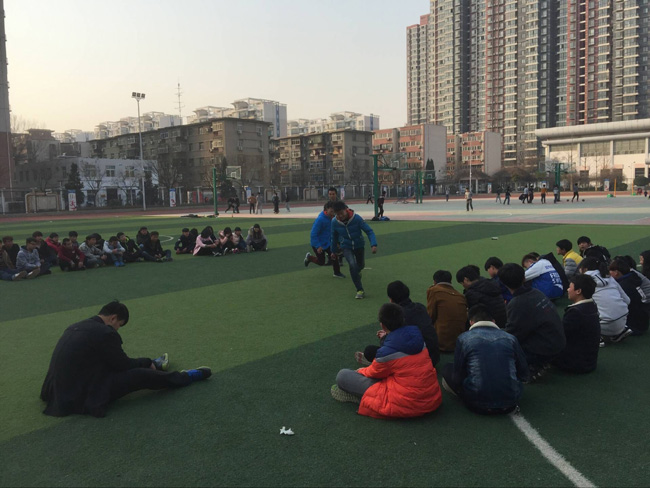 为了培养学生的团队精神和目标意识,学生处(团委)于2016年2月28日下午在操场对2016春季新生进行拓展训练。训练分为两步,第一个是经典热身项目松鼠大树,主要帮助同学们放松心情,具体是三人一组,两人面对面站立,双手向上交叉握成大树状,当喊出口令时第三位同学需要立即蹲下从两个人中间穿过去。第二个培训项目是团队PK赢跑,具体是两人一组猜拳,赢的人跑,输的人追。在规定的路程内,没有追上赢的人,赢的一方获胜,反之输的一方获胜。比赛实行单人淘汰制,先全军覆没的一方为输!这个项目的主要是目的帮助同学们了解分析目标的重要性,领悟到在以后的学习生活中也需要设立自己的目标,不虚度美好的学习时光。