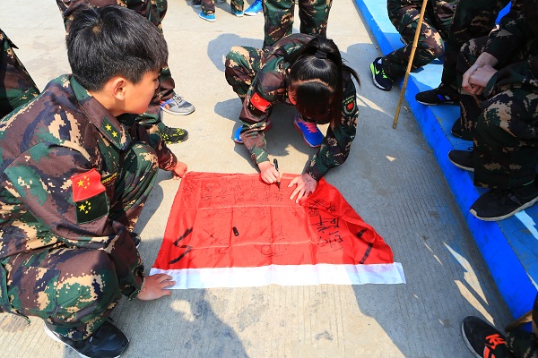为期两天一夜的青少年素质训练活动在拓展基地进行。小伙伴们很是期待接下来两天的拓展训练项目,到达基地后小伙伴们迅速换上作训服,很自觉地站好队伍,小伙伴们期待的拓展训练开始了,首先进行了团队建设,设计了各队的队旗、队徽、队歌、口号,展开了风采大比拼,活动场面很是激烈。
