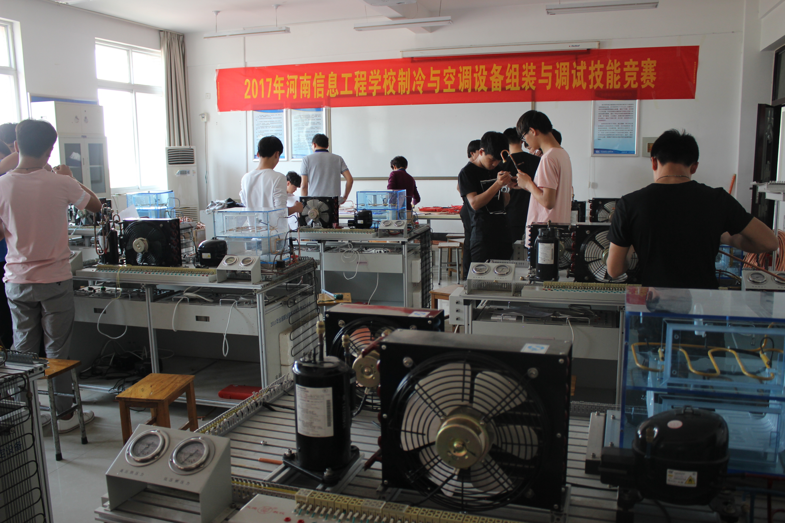 2017年5月19日,我校电子工程系在实训楼举行了制冷与空调设备组装与调试、单片机控制装置安装与调试、制冷与空调设备组装与调试、电子产品安装与测试四项技能竞赛。我校电子工程系16级的百余名学生报名参加了本次比赛。考场上,学生们一丝不苟的完成每一项操作动作,评委们认真打分。本次考试是对学生本学年学习成果的测评,也是对本学年教学效果的检验。