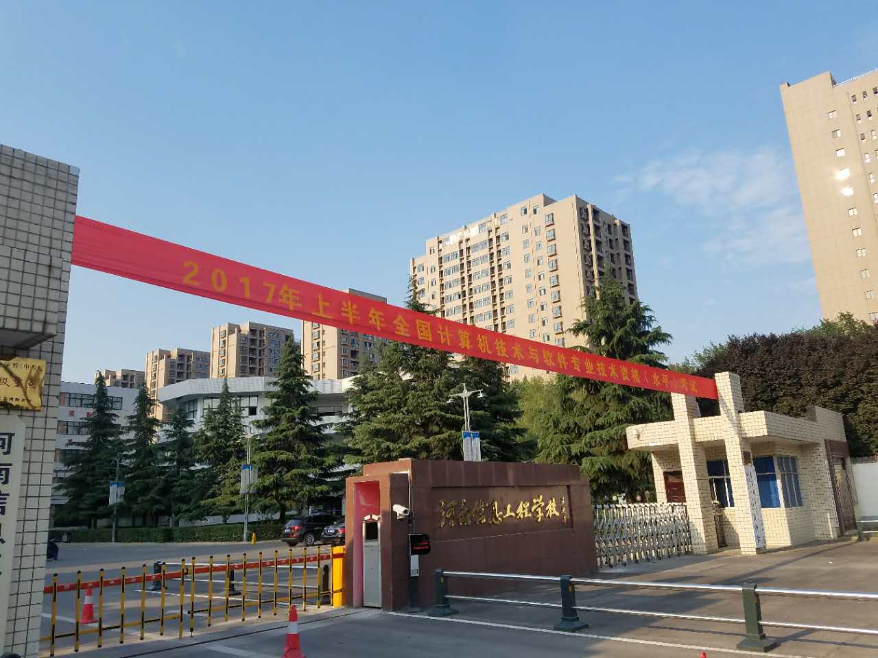 校门上的条幅挂好