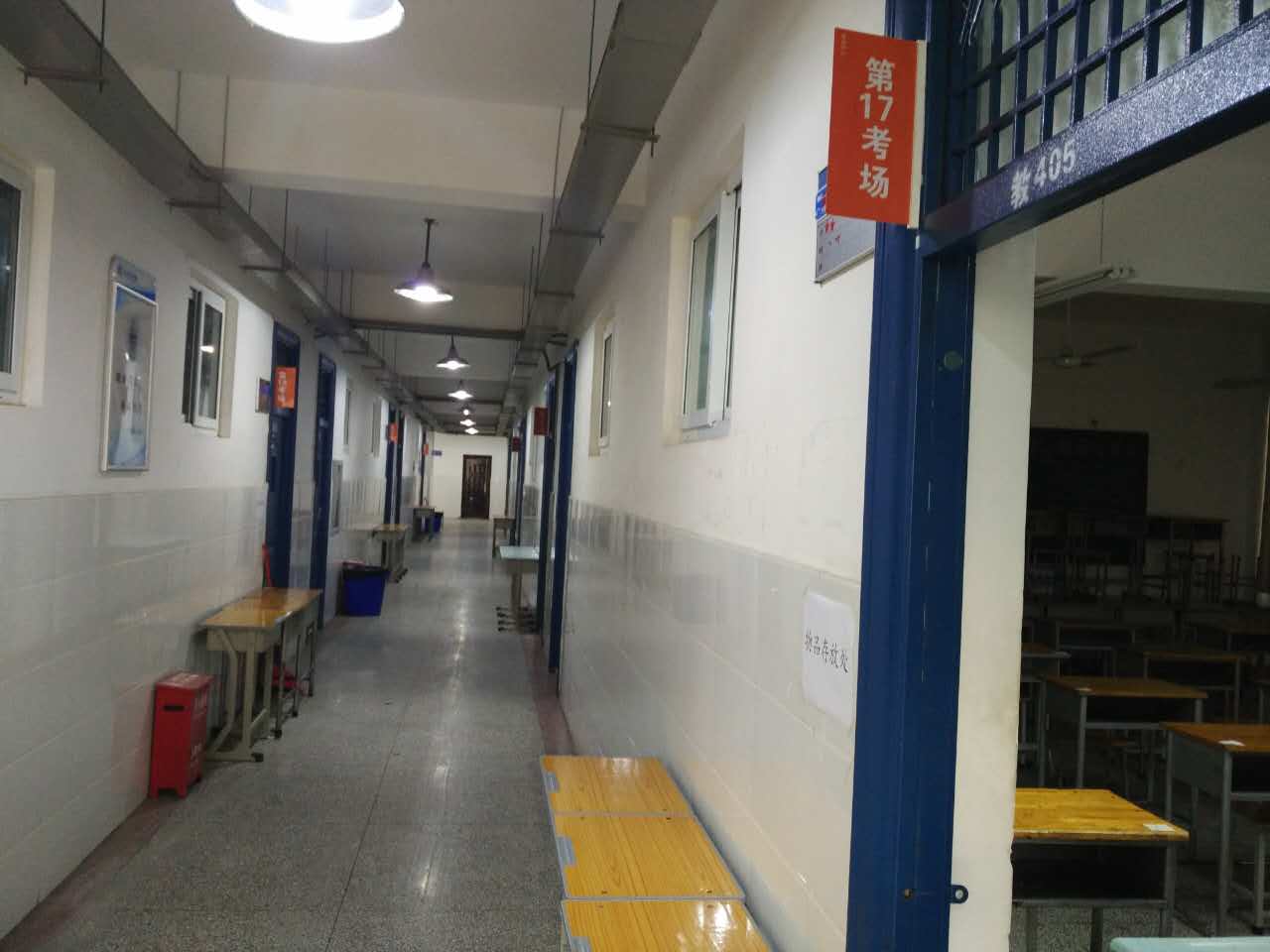明天我们学校又迎来一场大型的考试,我们的工作人员现在正在忙碌的准备考场。感谢各个相关科室的鼎力支持,学生处闫老师说在教学区发现一个烟头,自罚十块钱。也希望各个老师在教学区进行监督并做好榜样。