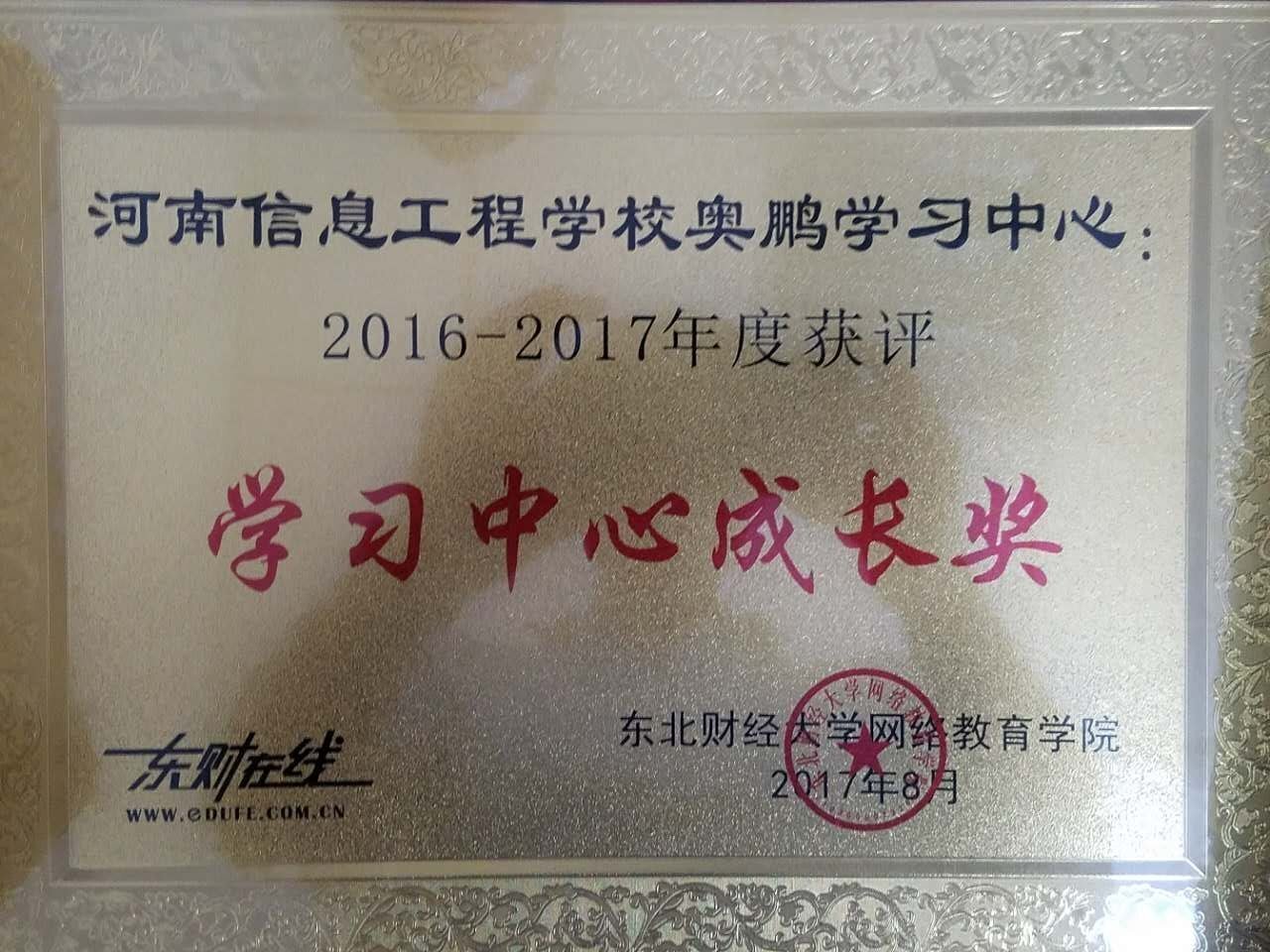 河南信息工程学校奥鹏学习中心荣获东北财经大学学习中心成长奖。