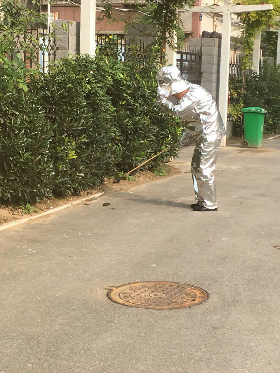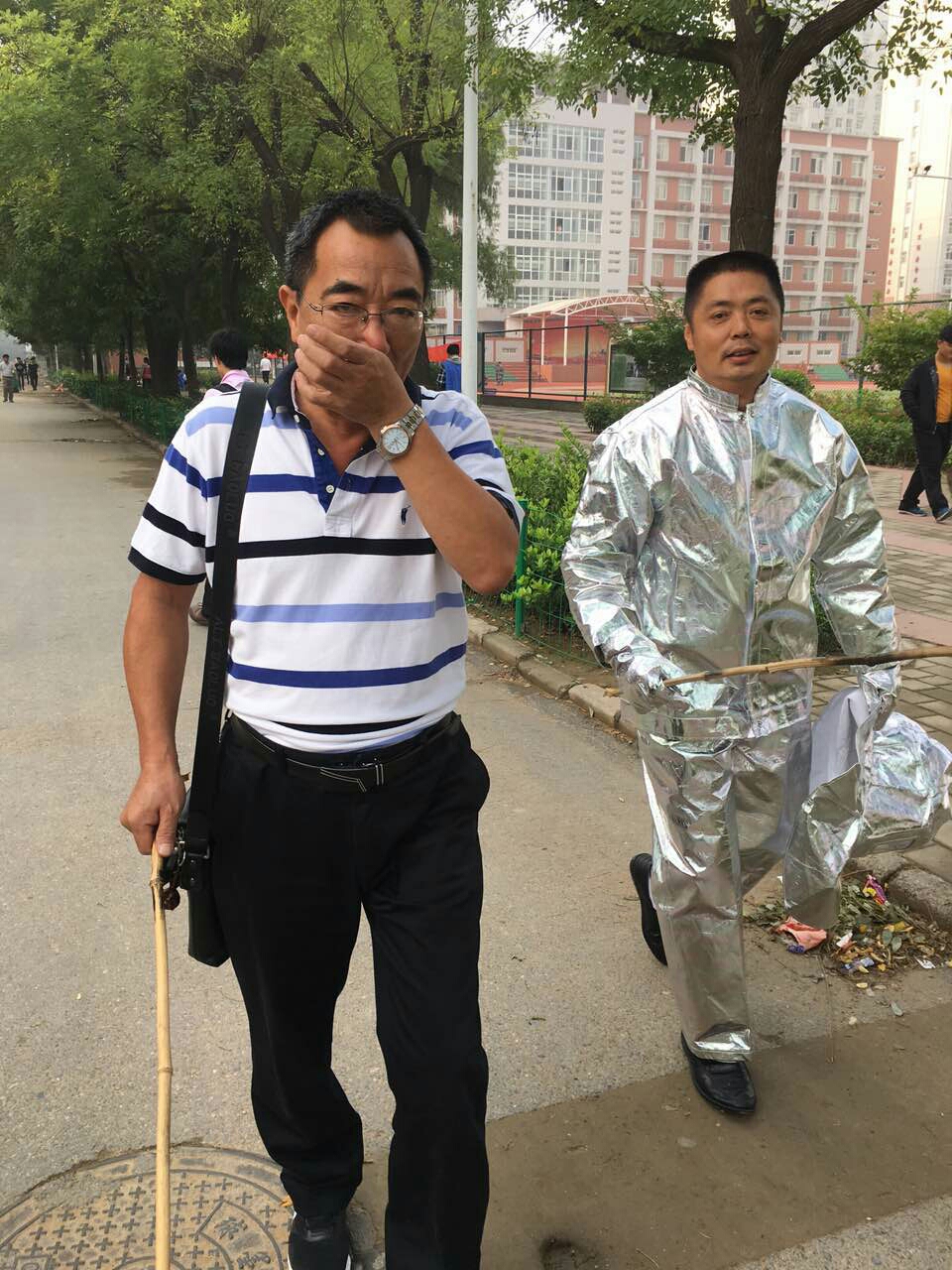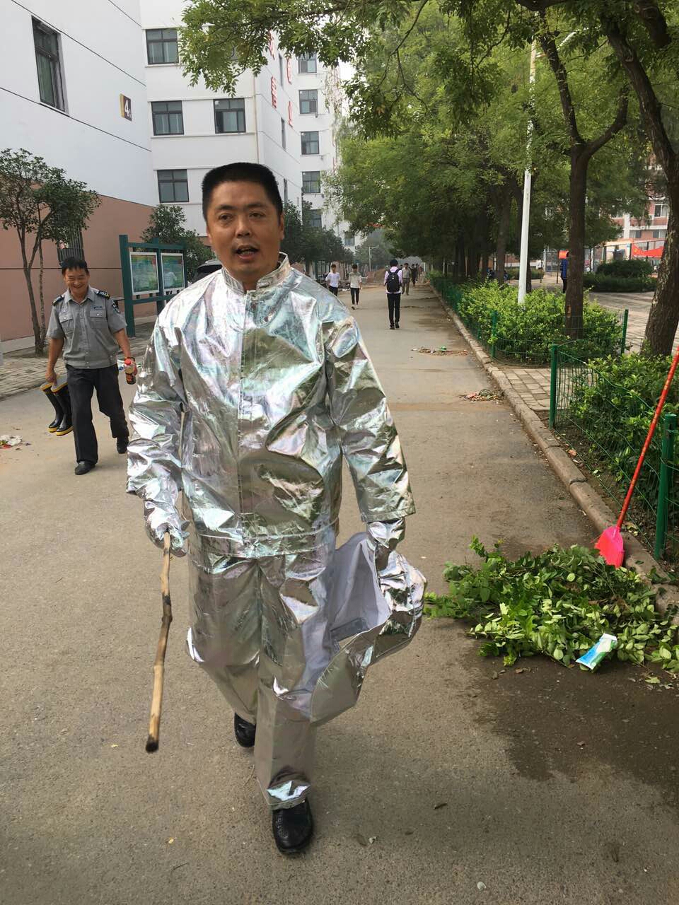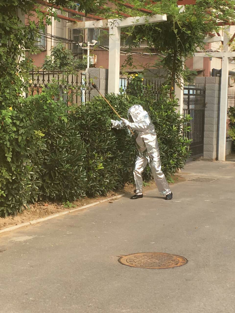 九月十一日早上,学生处例行检查时发现综合实训楼六楼、四号公寓楼六楼、职工餐厅门口共有3个大蚂蜂窝,保卫处得知后,非常重视,为了师生人身安全,保卫处岳处长,王处长于和后勤处陈处长于9月11日上午身穿防火服,全副武装,勇捅马蜂窝,经过他们半个小时的努力,终于取下蚂蜂窝,消除安全隐患。