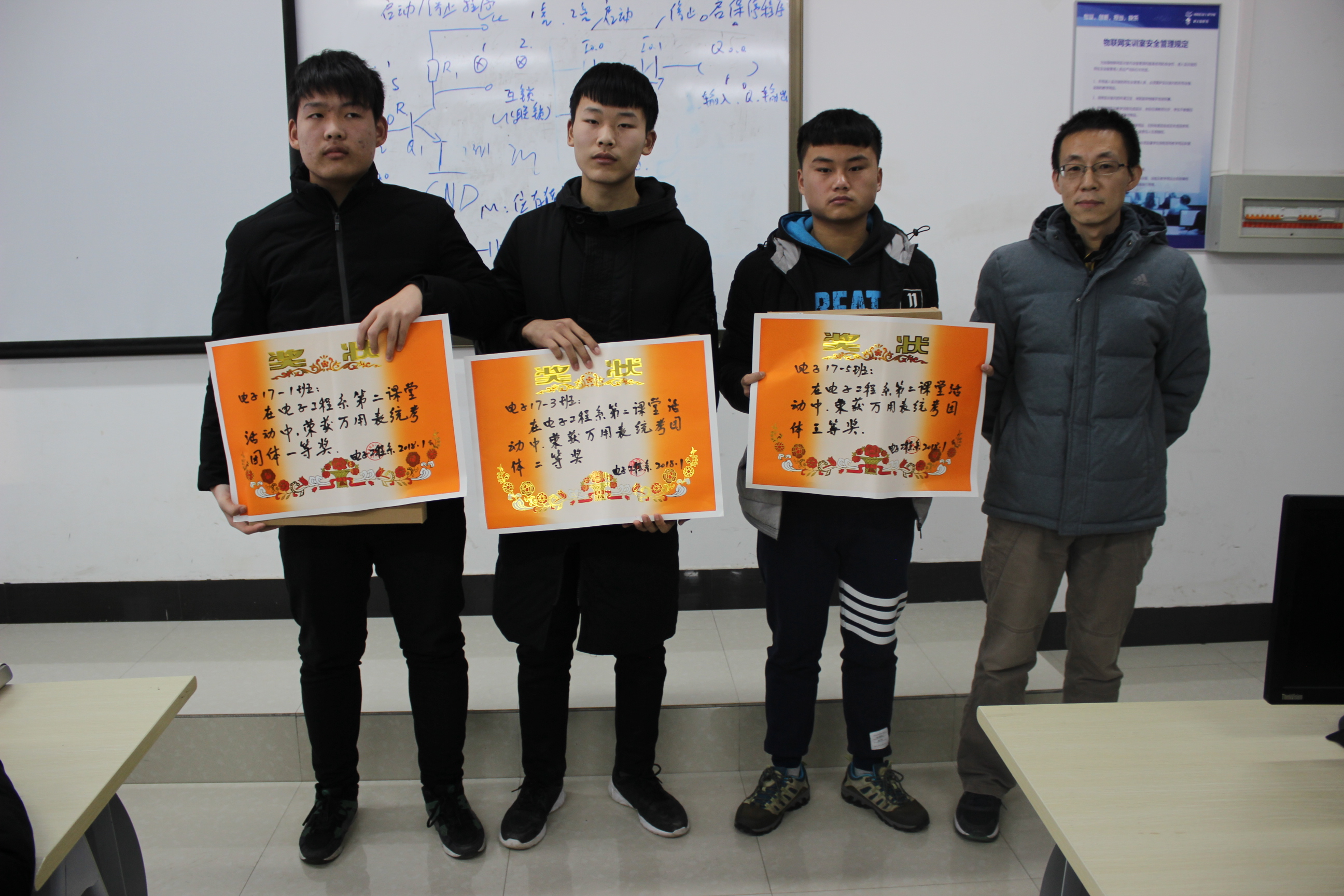 2018年1月11日,我校电子工程系在综合实训楼312室举行2017-2018学年第一学期第二课堂活动总结暨表彰大会。电子工程系副主任胡祎、教研主任以及2017级电子工程系获奖学生代表参加了本次大会。