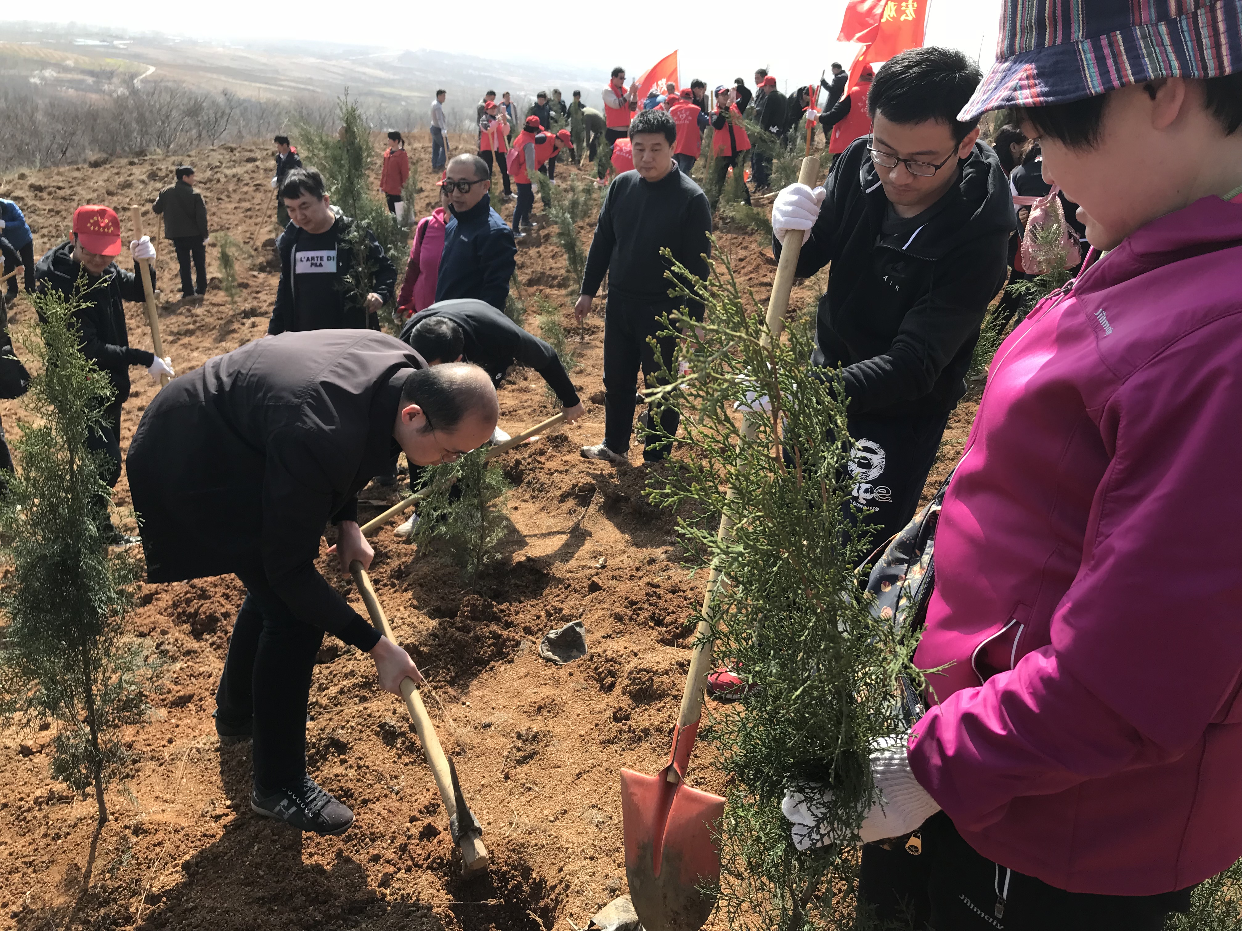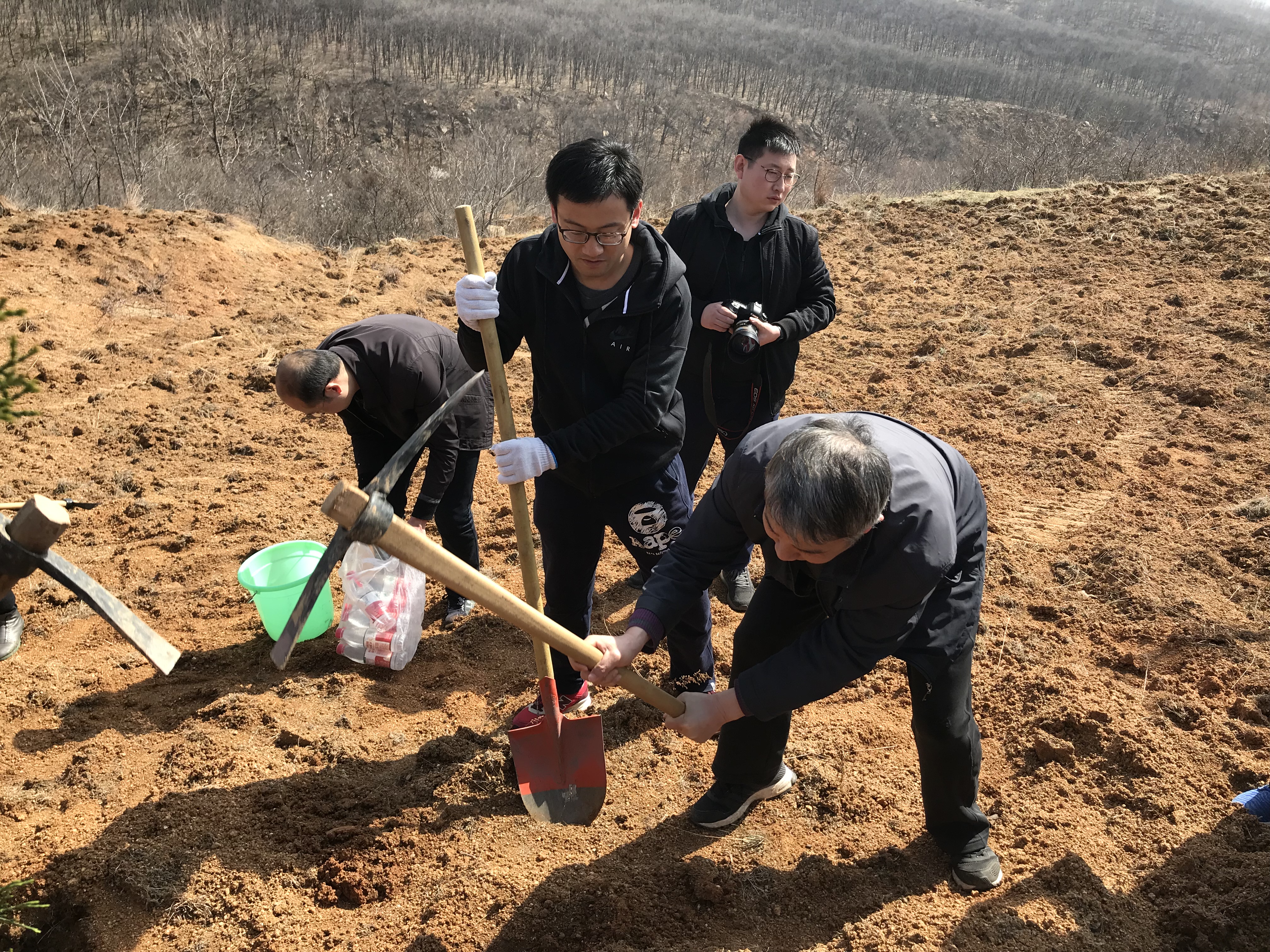 艺术系教师响应学校开展植树节义务植树的号召,积极参与此次义务植树活动。2018年3月23日清晨,大家驱车来到了郑州市义务植树基地,分发提前准备好的小树苗和铁锹、水桶等工具。春风虽寒,但大家植树的热情不减,个个忙的不亦乐乎,有挖坑的、植苗的、填土的、担水的,大家分工明确、配合默契。经过半天辛勤的劳动,数十棵树苗都安了家。