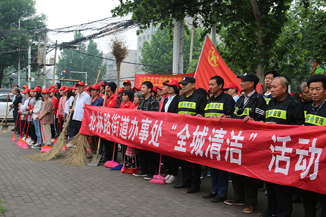 为响应郑州市爱卫会的号召,2018年5月11日我校组织30余名志愿者到北林路办事处亚卫社区晨旭路沿街参加“全城清洁”行动。