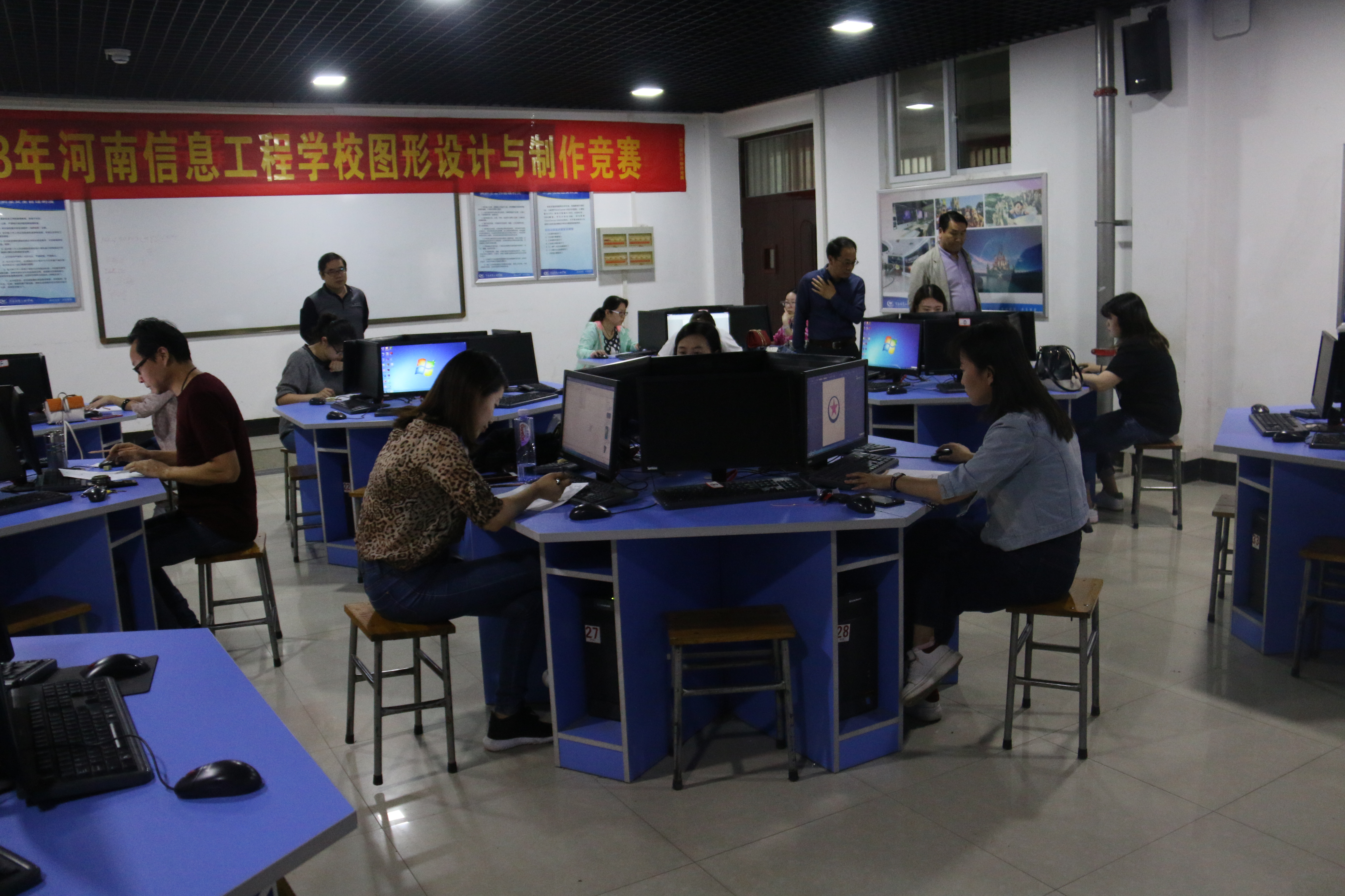 2018年5月22日(周二)下午14:30—17:30,艺术设计系15名专业教师在综合实训楼513机房进行了平面设计专业教师技能竞赛。