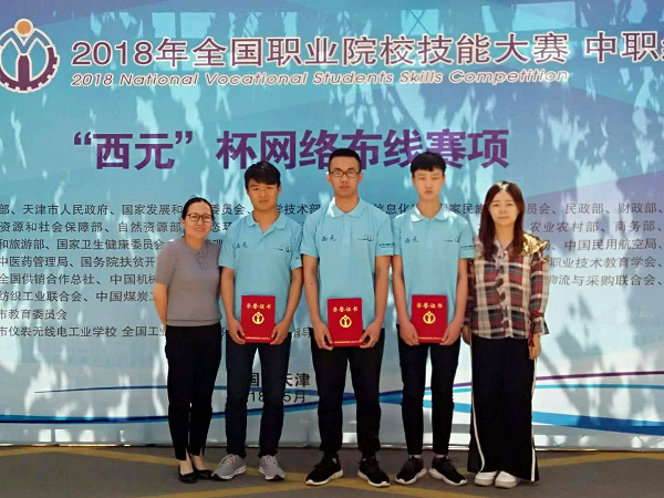2018年5月27日全国中职技能“西元杯”综合布线赛项在天津仪表无线电工业学校举办,25日由薛东亮校长亲自带队,学生范俊江,王煜镇,刘波,辅导老师刘秋丽,黄山珊一行六人奔赴天津。