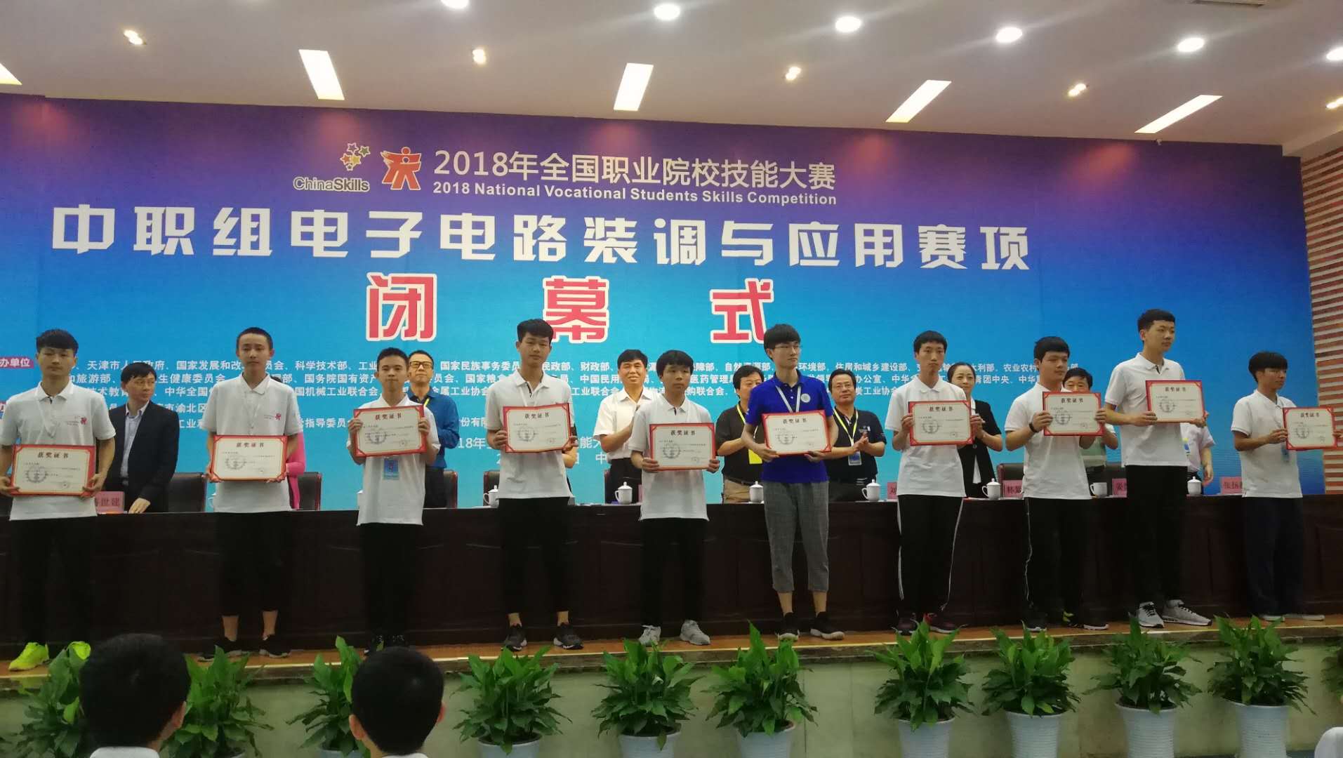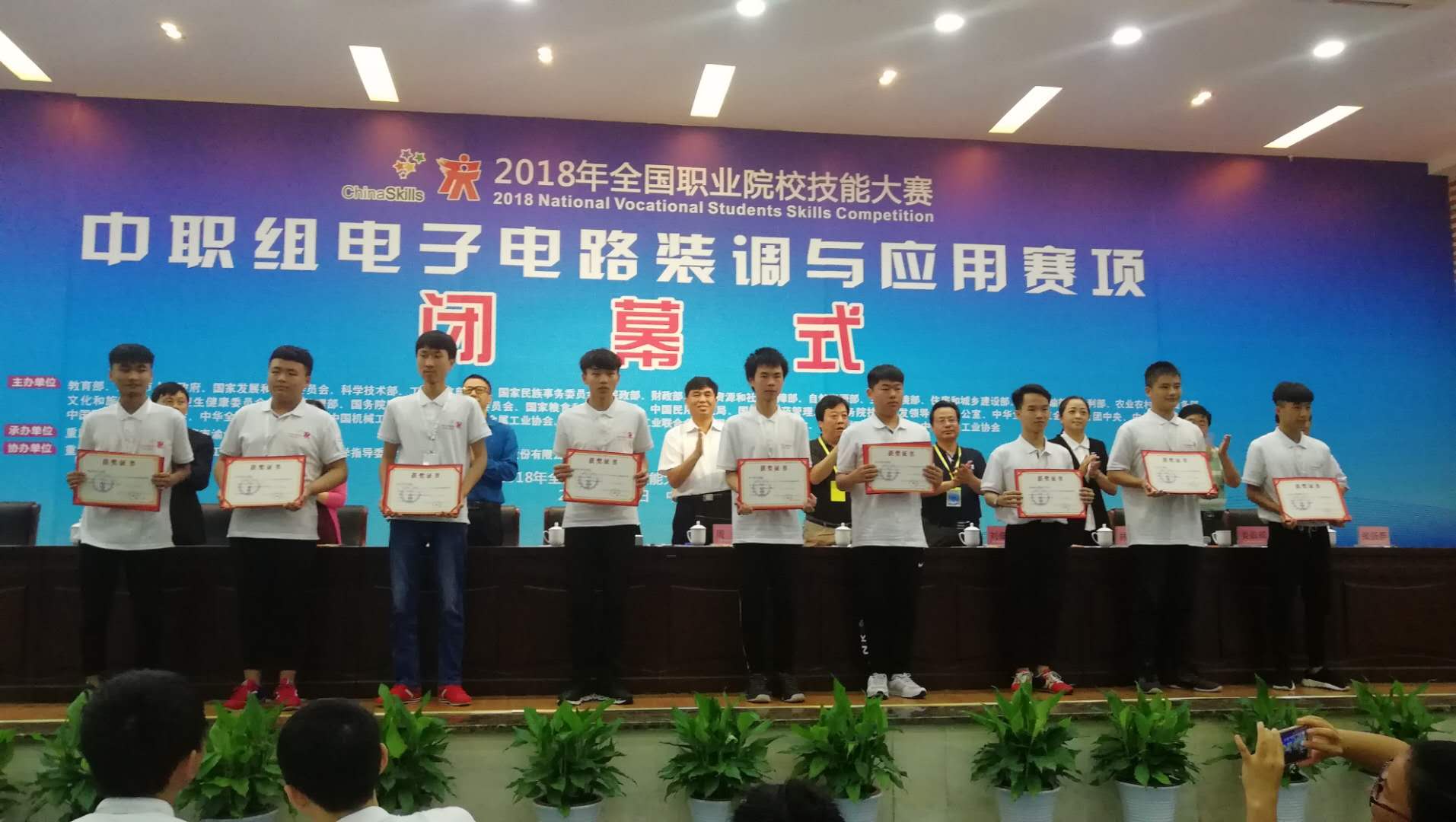 2018年5月31日-6月2日,2018年全国职业院校技能大赛(中职组)“电子电路装调与应用”赛项在重庆市渝北职业教育中心举行。来自全国34个省、直辖市、自治区及计划单列市共97支参赛代表队汇聚重庆。由我校电子工程系教师学生组成的代表队代表河南省参加了本次比赛,学生陈黎明、毛金鹏获得个人二等奖的好成绩。