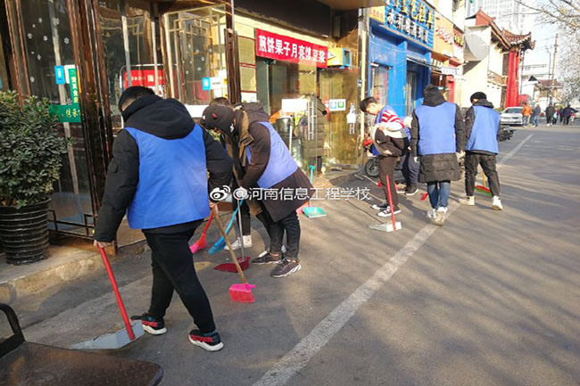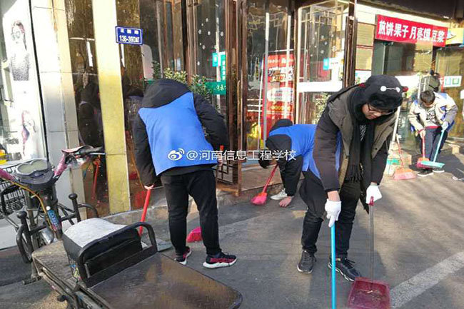 为了响应郑州市的号召,2018年12月14日,我校组织近10名青年志愿者到茂花路参加“全城清洁”活动。