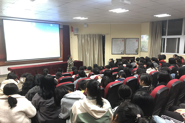 为进一步普及女生青春期健康知识,引导女生正确对待青春期生理和心理变化,增强自我保护意识,做健康快乐女生,2019年11月18日至20日,学生处(团委)在道德讲堂举办了四场女生青春期专题教育讲座,2019级全体女生600余人聆听了讲座。