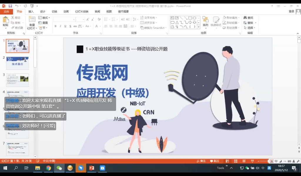 从2020年5月11日起,新大陆教育开展“1+X 传感网应用开发”系列在线实战培训直播课程,培训在钉钉上进行,共分为初级5场、中级10场、高级5场。结合我校“1+X”考核站点建设需求,我校电子工程系物联网技术应用教研组全体老师参加了本次初级、中级培训。