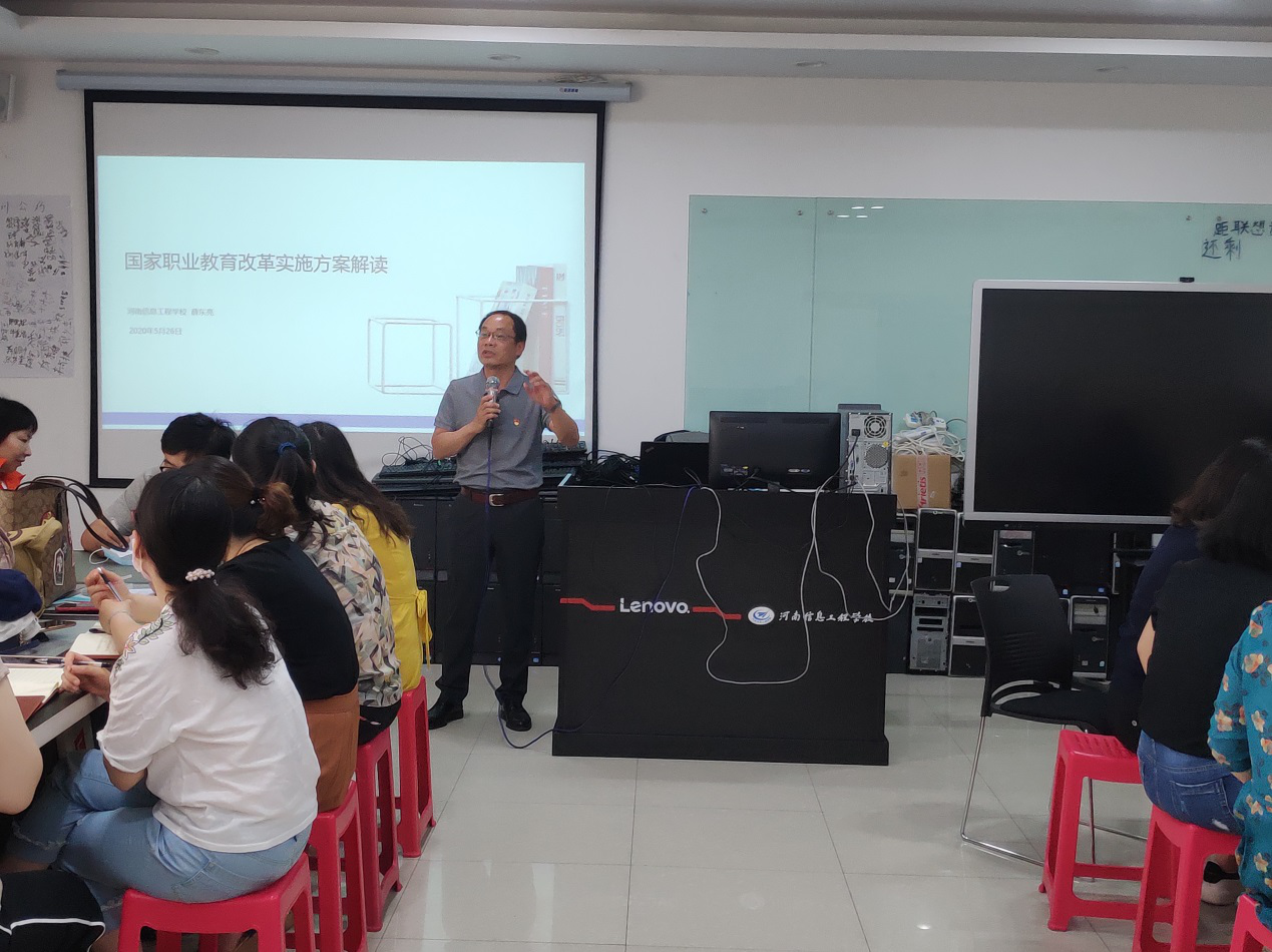 本次学习活动由支部书记李强主持,他强调党员干部学习的重要性,然后由薛校长深刻剖析和解读了《国家职业教育改革实施方案》,强调职业教育和高中阶段教育同等重要,从职教20条发布的时间、背景、主线、内涵等方面展开详细论述,发展职业教育是大势所趋,河南省职业教育具有巨大的潜力和提升空间。他以学校的实际和定位为出发点,指出了学校未来发展所面临的新机遇和新挑战,提出了许多具有指导性和可操作性的建议,并根据学校实际状况提出了发展设想,要以培训,校企合作,学历证和职业技能证双证合一等方面进行改革。