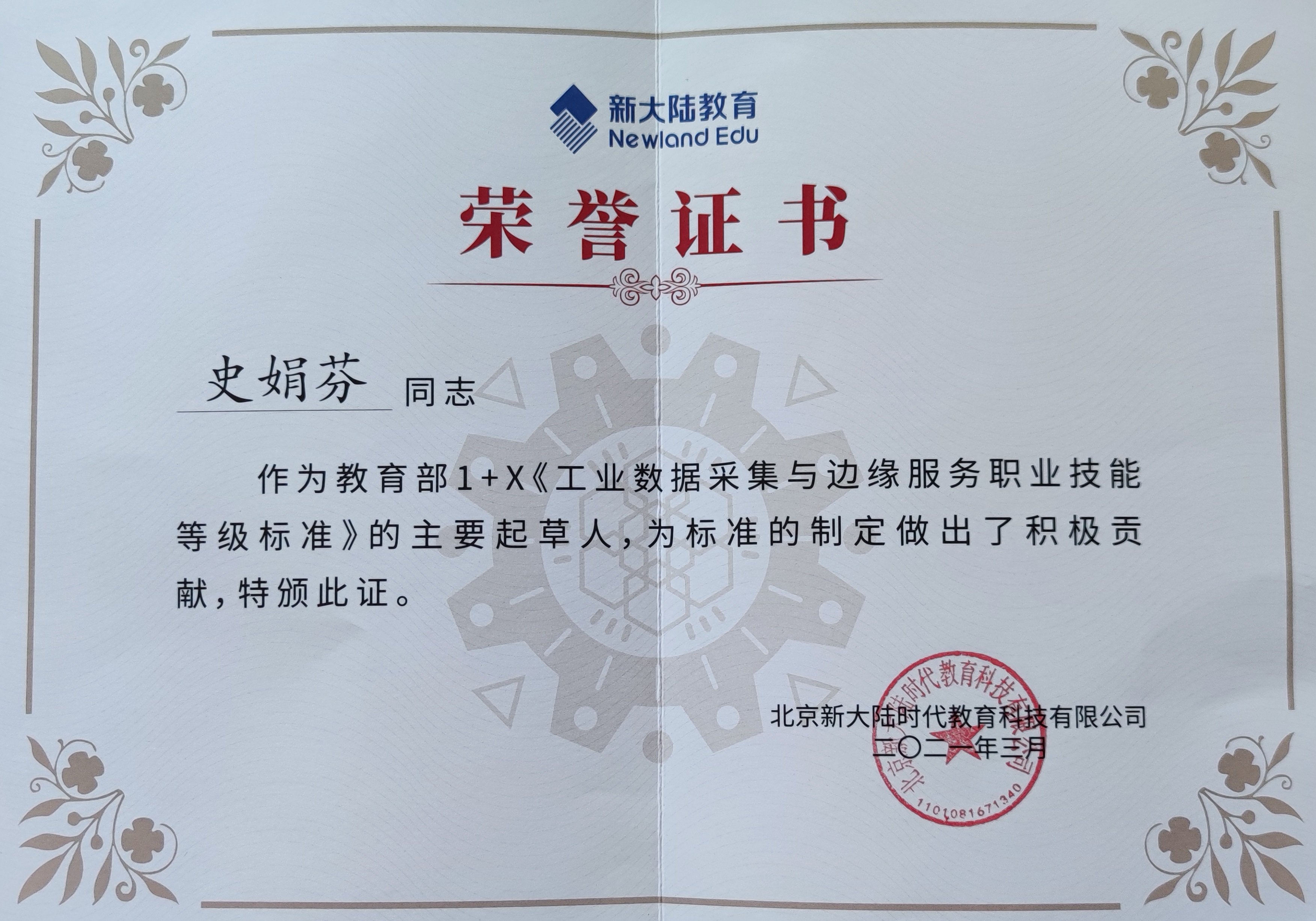 为深入贯彻落实《国家职业教育改革实施方案》、《关于在院校实施“学历证书+若干职业技能等级证书”制度试点方案》精神,积极响应国家号召,2021年3月18 日,由北京新大陆时代教育科技有限公司主办的1+X物联网工程实施与运维、工业数据采集与边缘服务职业技能等级证书说明会在福建福州隆重举行,来自全国各地职业院校、行业龙头企业的近150位专家、教师参加了本次说明会。本次说明会上成立了1+X工业数据采集与边缘服务职业技能委员会,河南信息工程学校被评价机构确定为等级证书标准起草单位,教务处兼电子工程系主任史娟芬聘为主要起草人。在今后,我校将积极参与指导工业数据采集与边缘服务职业技能等级证书教材编写、资源开发、师资培训具体落地实施培训及考核工作。