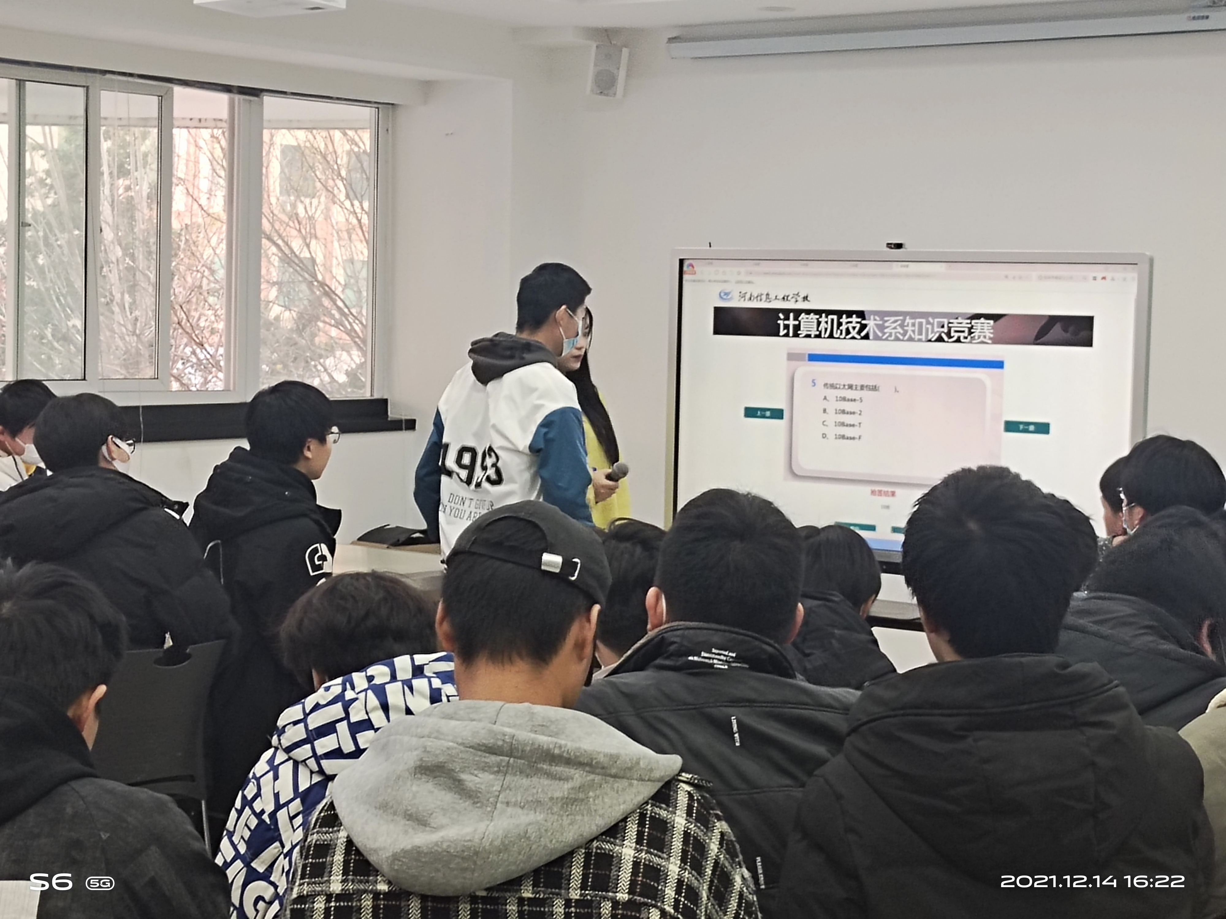 计算机技术系为此次网络技术知识竞赛活动专门组织教师开发了必答题展示和抢答题展示及抢答平台,学生使用手机扫描二维码登录平台,完成抢答题环节的抢答,学生在平台中互动良好,兴趣高涨。本次竞赛最终获得一等奖的班级是计算机21-15班,获得二等奖的班级有计算机21-16班和计算机21-18班,获得三等奖的班级有计算机21-10班、计算机21-14班和计算机21-17班,本次活动取得了圆满成功!