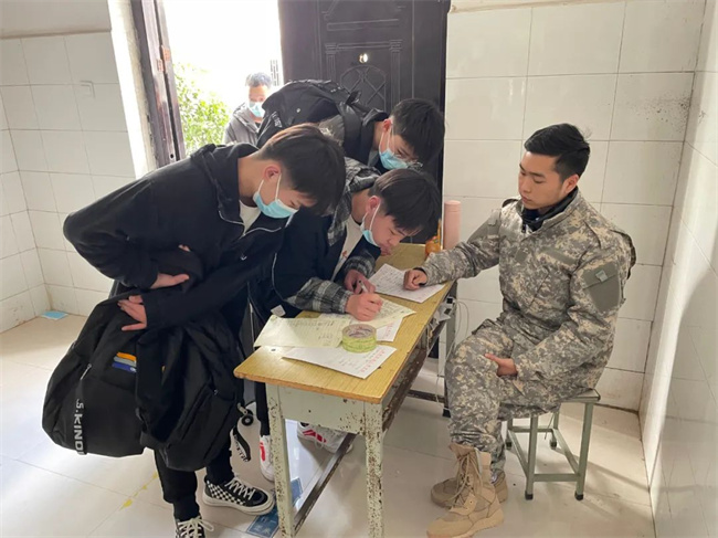 宿舍楼门口都坐有教官和老师值班,对进入宿舍的同学进行登记入住,并提醒同学们做好安全防范,特别是防火防盗安全。