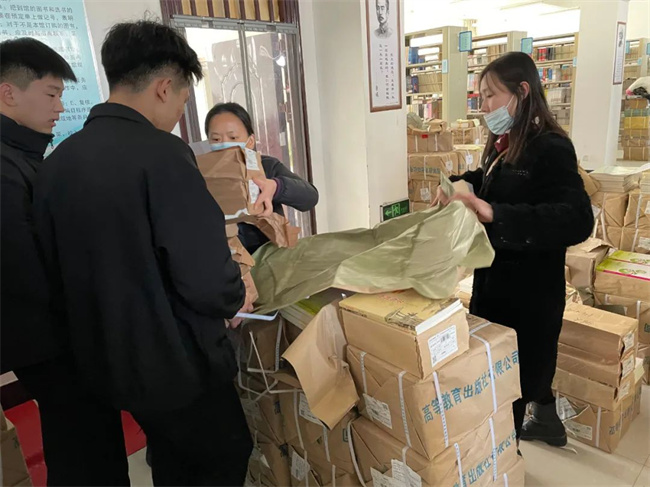图书馆在各班班主任的带领下,做好教材的发放。