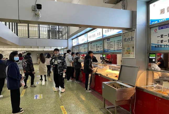 学生食堂按照开学方案要求,为了保障返校学生用餐安全,对食堂的灶具、餐具、餐桌等设施设备进行了全方位的清洗消毒。在用餐时间上,为保障学生返校后都能及时用餐,从早餐开始到晚上10点前一直不间断地向学生供餐,为返校师生提供了安全周到的用餐服务。