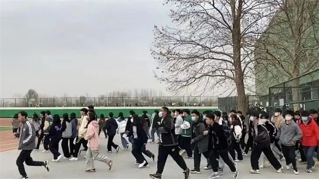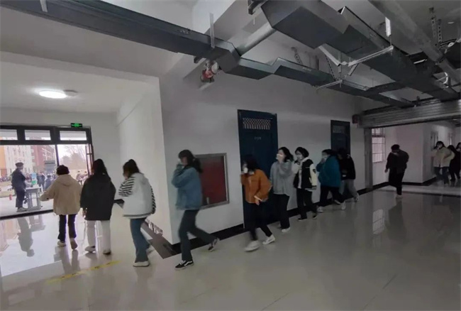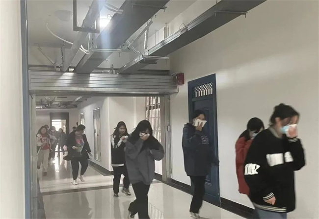 3月3日下午4:30,消防应急疏散演练正式开始。随着“警报”响起,学生们迅速用湿毛巾捂住口鼻、抱头、弓腰,按照安全疏散路线,冷静、快速地撤离。