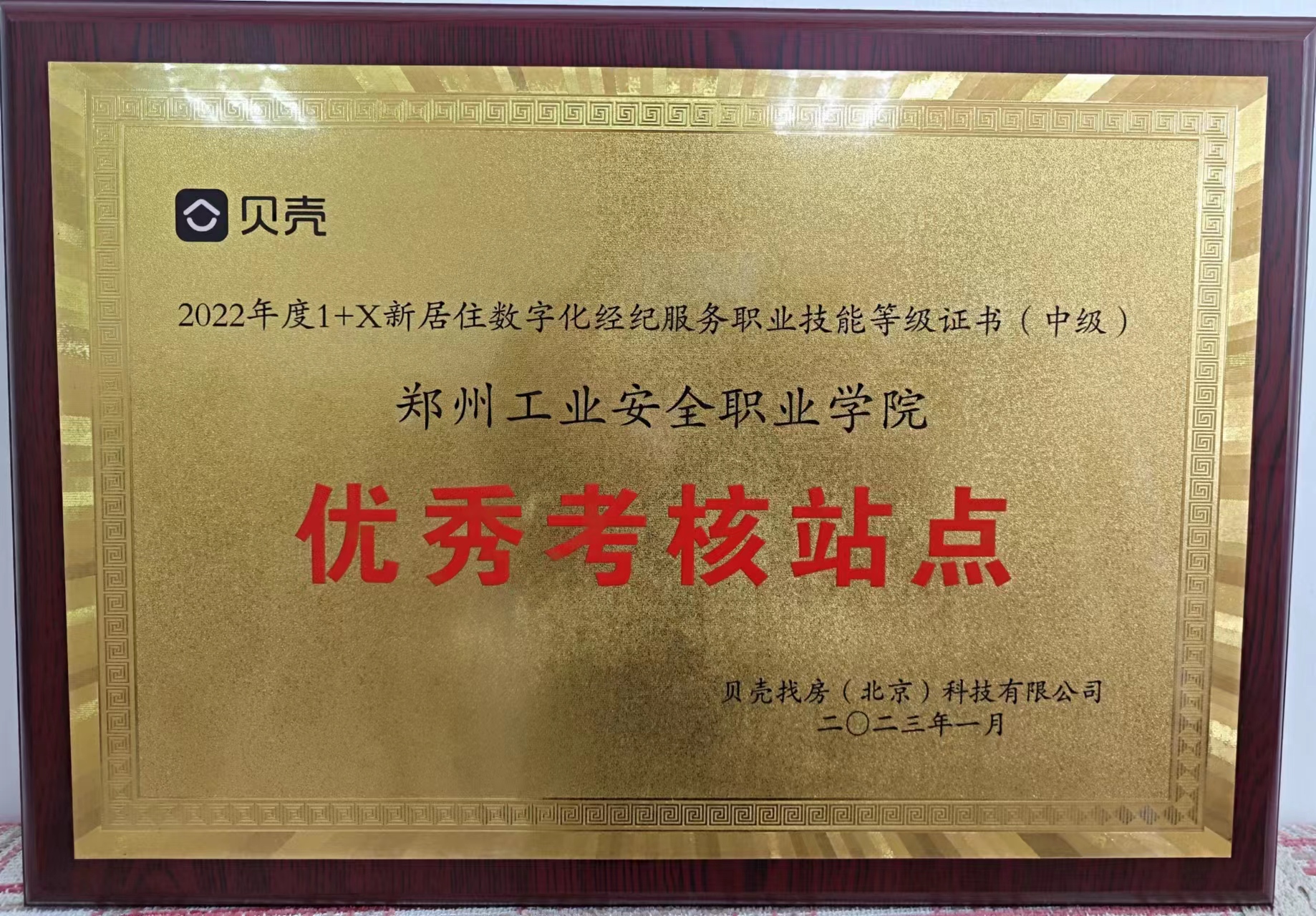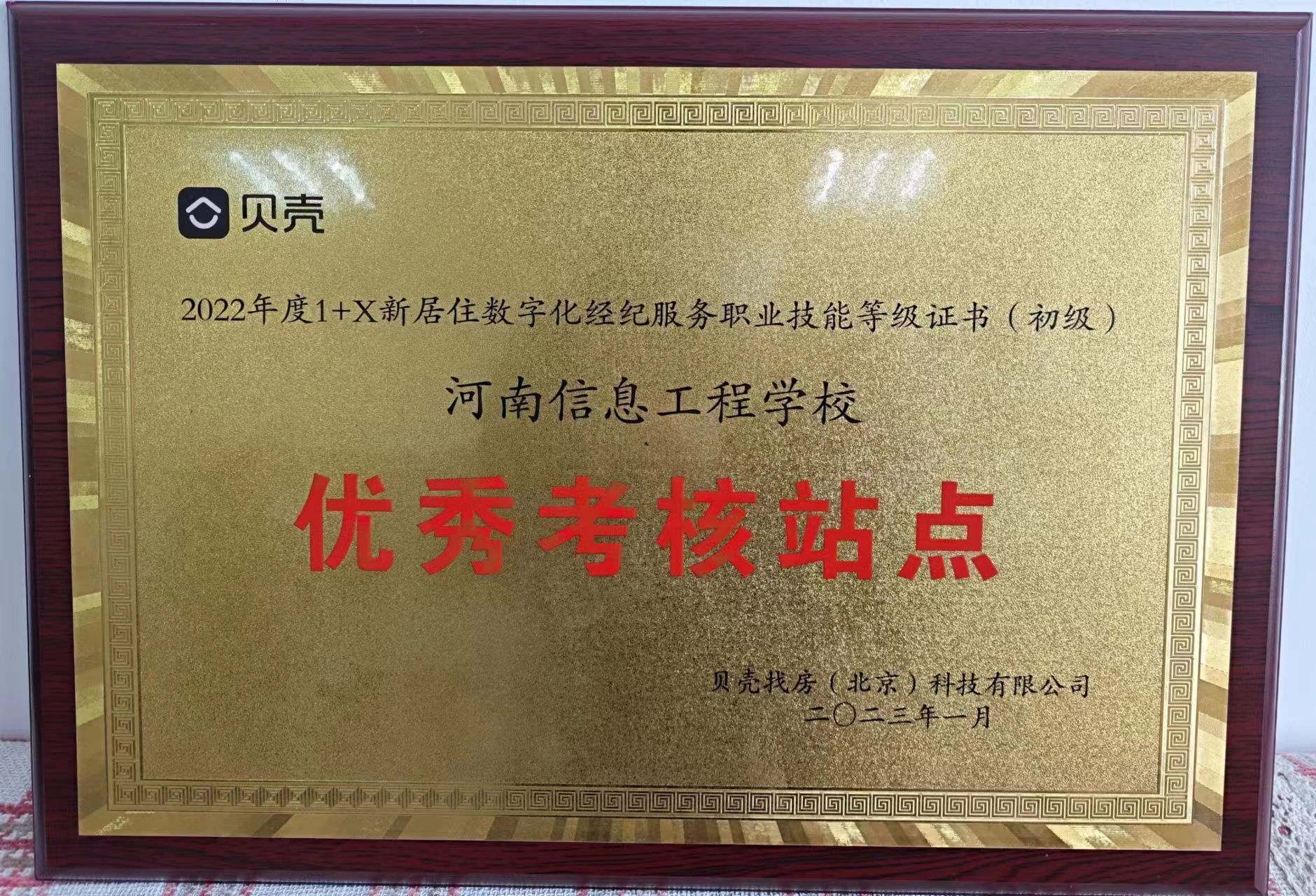 新学期伊始,好消息传来。鉴于我校北校区商务系和南校区安全工程系去年在1+X证书制度考务工作中的优异表现,贝壳找房(北京)科技有限公司授予我校“2022年度1+X新居住数字化经纪服务职业技能等级证书优秀考核站点”荣誉称号。