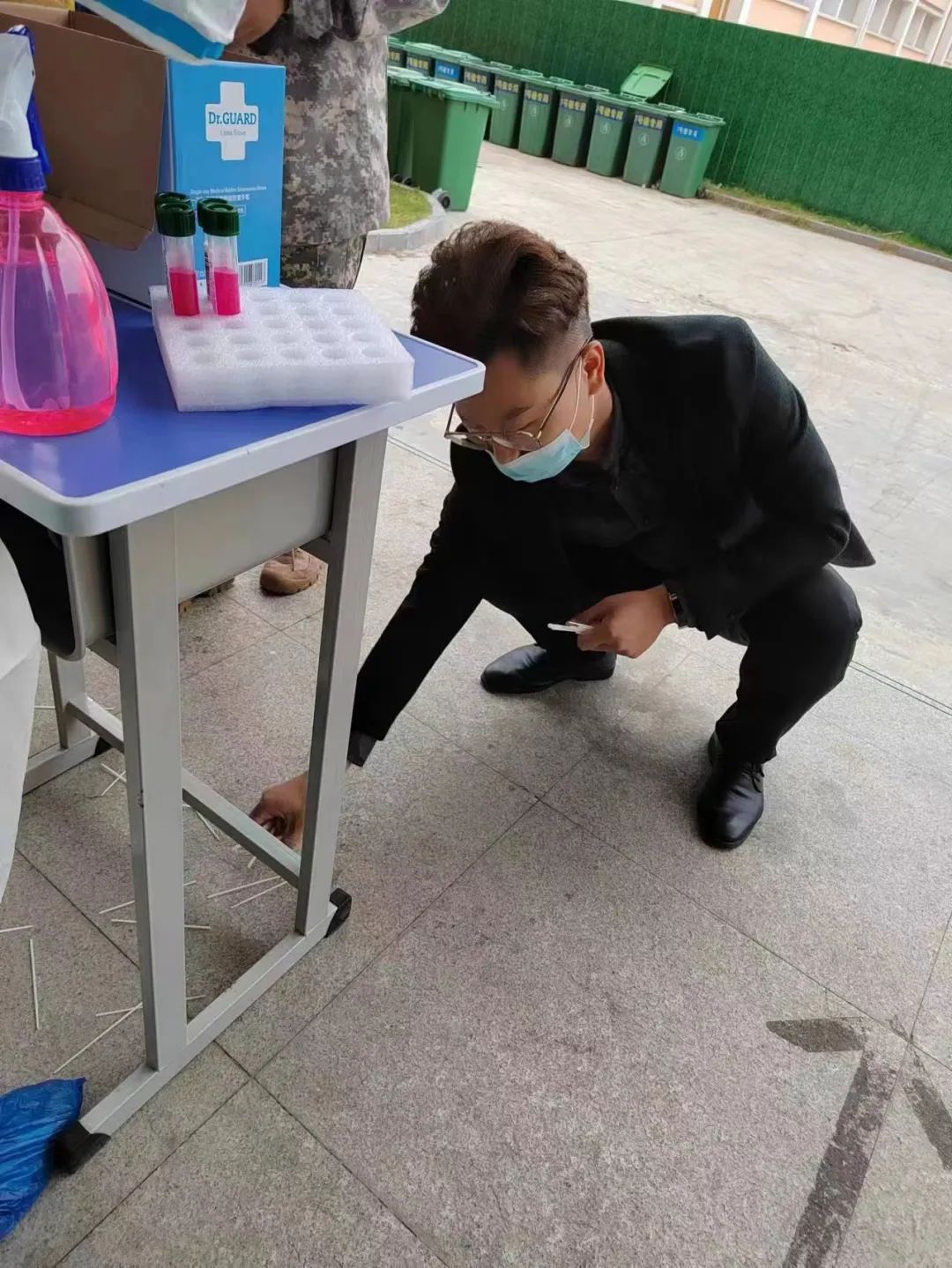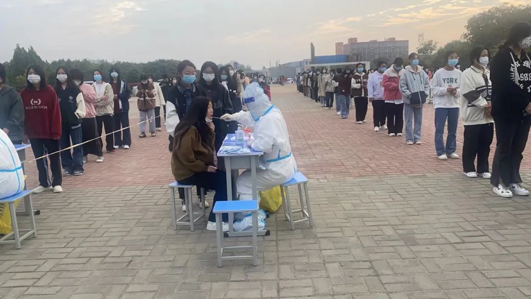 为确保学生高效快速地进行核酸采样,班主任、在校教师和教官在疫情防控期间担任起维护核酸队列秩序、对场所进行消杀等工作,使得我校每天的核酸检测工作秩序井然,顺利完成。