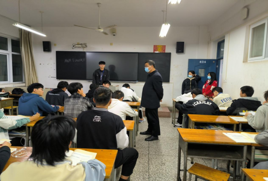 各组分别到一教、二教、凌霄书院进班检查。每到一个班级,都仔细观察同学们的晚自习状态,耐心询问同学们的学习情况和生活情况,鼓励同学们认真学习,珍惜时间,刻苦钻研,充分利用好课余时间充实提升自己,不断提高综合素质和就业竞争力。检查发现,各班晚自习秩序总体良好,走廊里值班的学生干部认真负责,各教室卫生干净整洁,劳动工具及操作台物品摆放井然有序。检查过程中也发现了一些问题,个别学生晚自习时间打游戏,两个班级用多媒体播放音乐,学习气氛不够浓厚,三位处长都及时反馈给了相关班主任并要求加强管理,充分发挥班干部的作用,对存在的问题要进一步自查自纠,限时整改和落实。