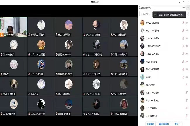 由于疫情紧张,本学期教学情况特殊,大部分教学通过线上开展。同学们认为大多数教师线上教学内容丰富,责任心强,教学方法多样,讲课认真,针对同学们不会的知识点通过录屏等方式帮助巩固记忆,对任课教师的教学比较满意。同时,同学们提出了线上教学的缺点,如上课积极性需要提升,作业提交率相对较低,动手实践的机会较少。最后,各系主任对同学们提出的部分问题进行了解答,为了提升学习效果给同学们提了不少好的建议和学习方法。