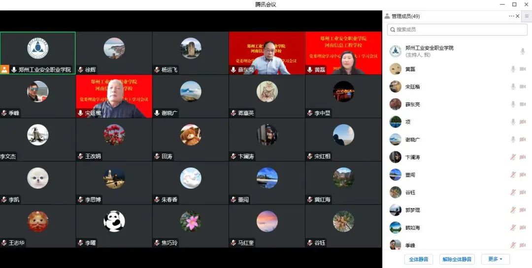 会上,黄磊校长作重要讲话。黄校长强调,我们要按照中央、省委的指示和要求,通过通读、细读、精读认真学习贯彻党的二十大精神,深刻领会、准确把握党的二十大提出的新思想新论断、作出的新部署新要求,切实把学习宣传贯彻的着力点聚焦到习近平新时代中国特色社会主义思想,确保全校各支部、各部门和广大党员干部师生深刻领悟“两个确立”的决定性意义,加深对习近平新时代中国特色社会主义思想、马克思主义中国化时代化以及中国式现代化等重大问题的认识,深刻理解党的二十大对全面建设社会主义现代化国家作出的战略部署,切实把思想和行动统一到党的二十大精神上来,将二十大精神内化于心外化于行,以更高站位把牢政治方向,以更大作为服务发展大局,以更高标准加强自身能力建设,切实把学习成效转化为推动两校高质量发展的强大动力,奋力谱写两校事业发展的新篇章。