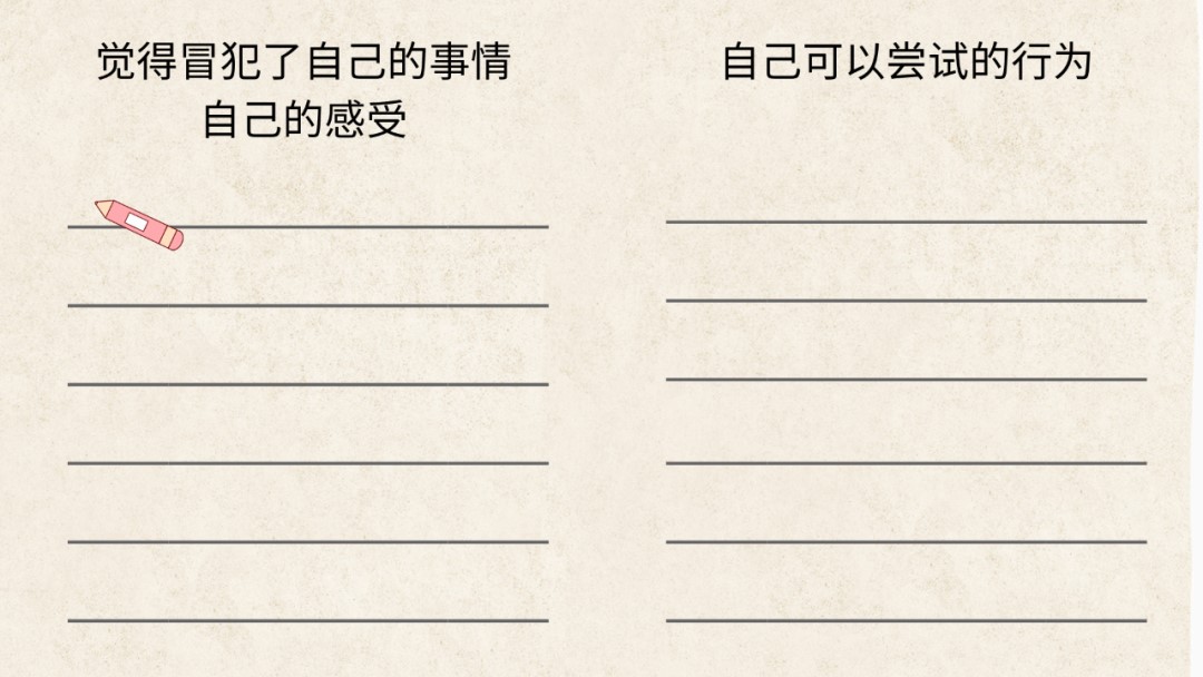推荐表达情绪的方法: 尝试列举出觉得自己被冒犯了边界的事情,从小事开始学会表达自己的情绪感受。